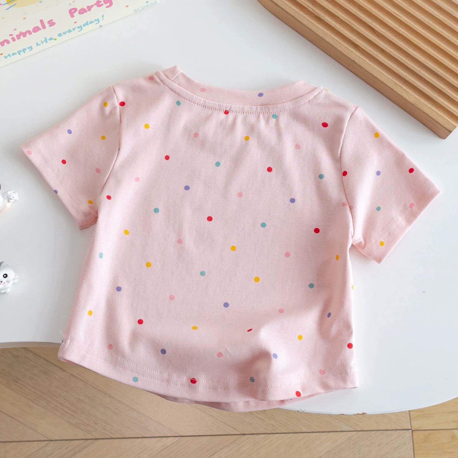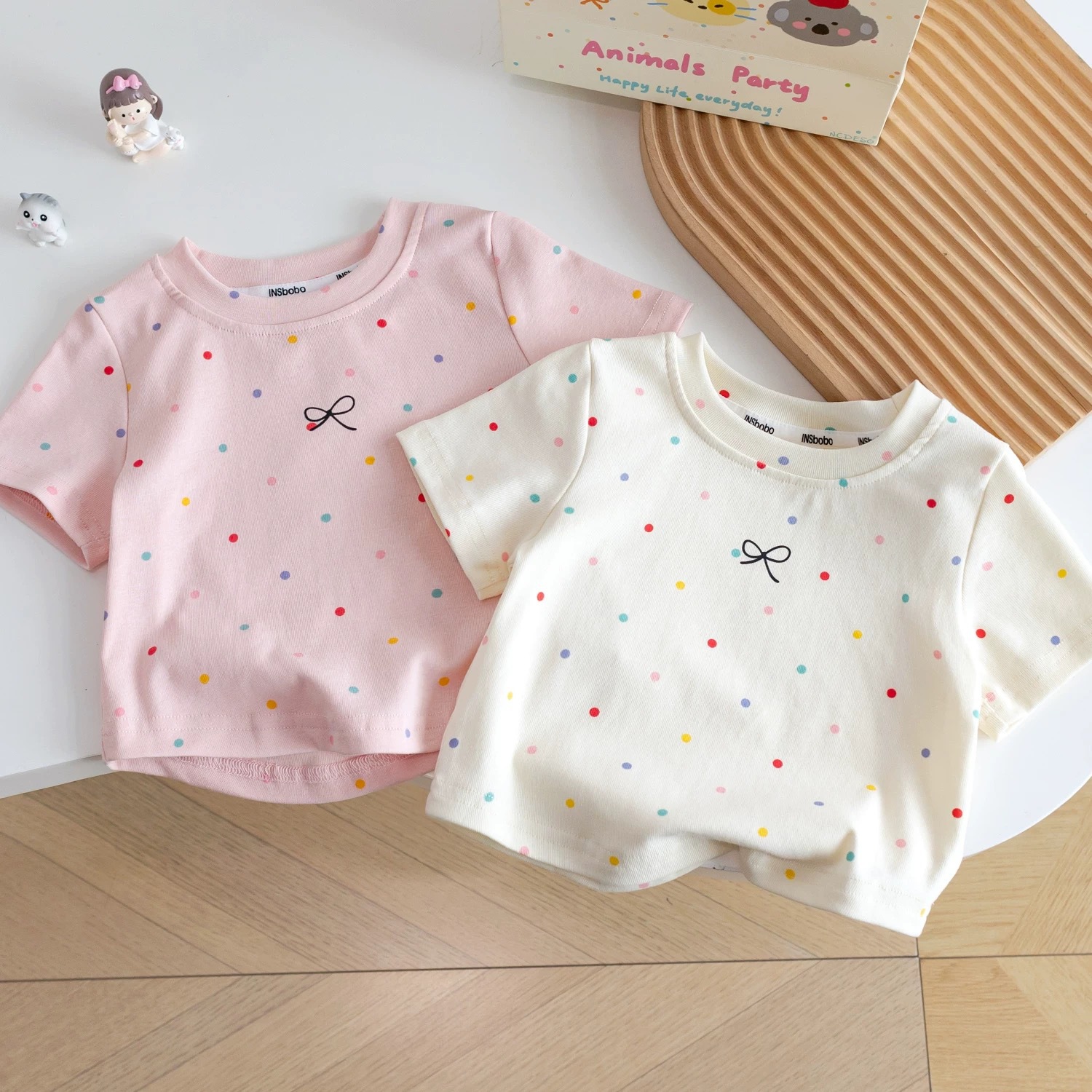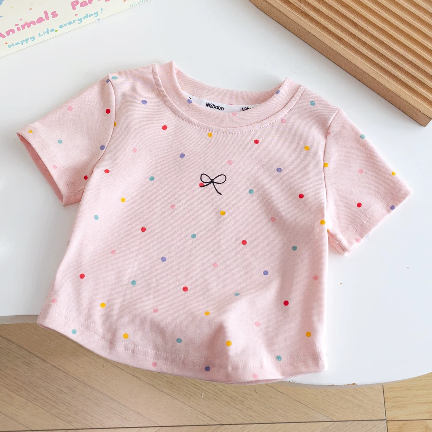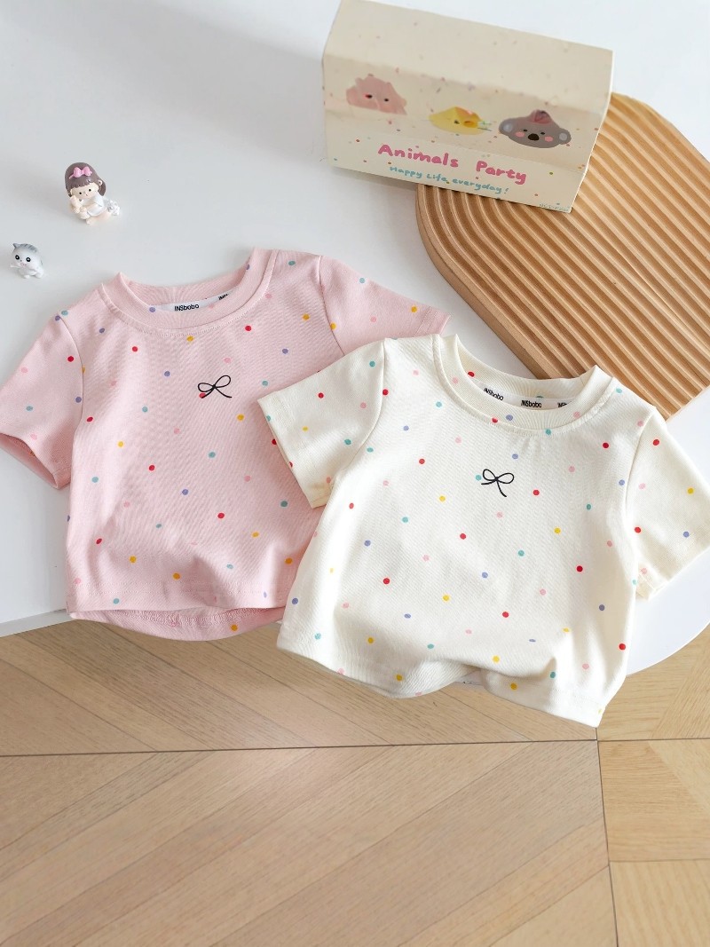 100% хлопковая футболка с коротким рукавом для девочек 2025 новые детские топы в горошек летняя одежда для малышей простые универсальные топы