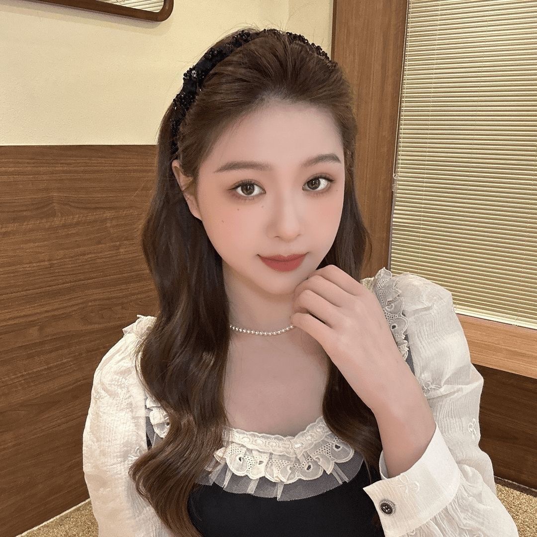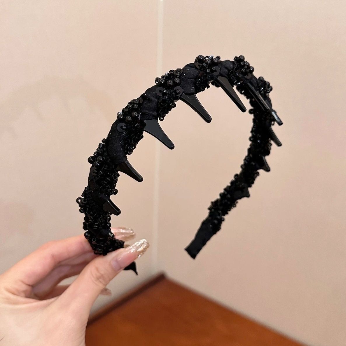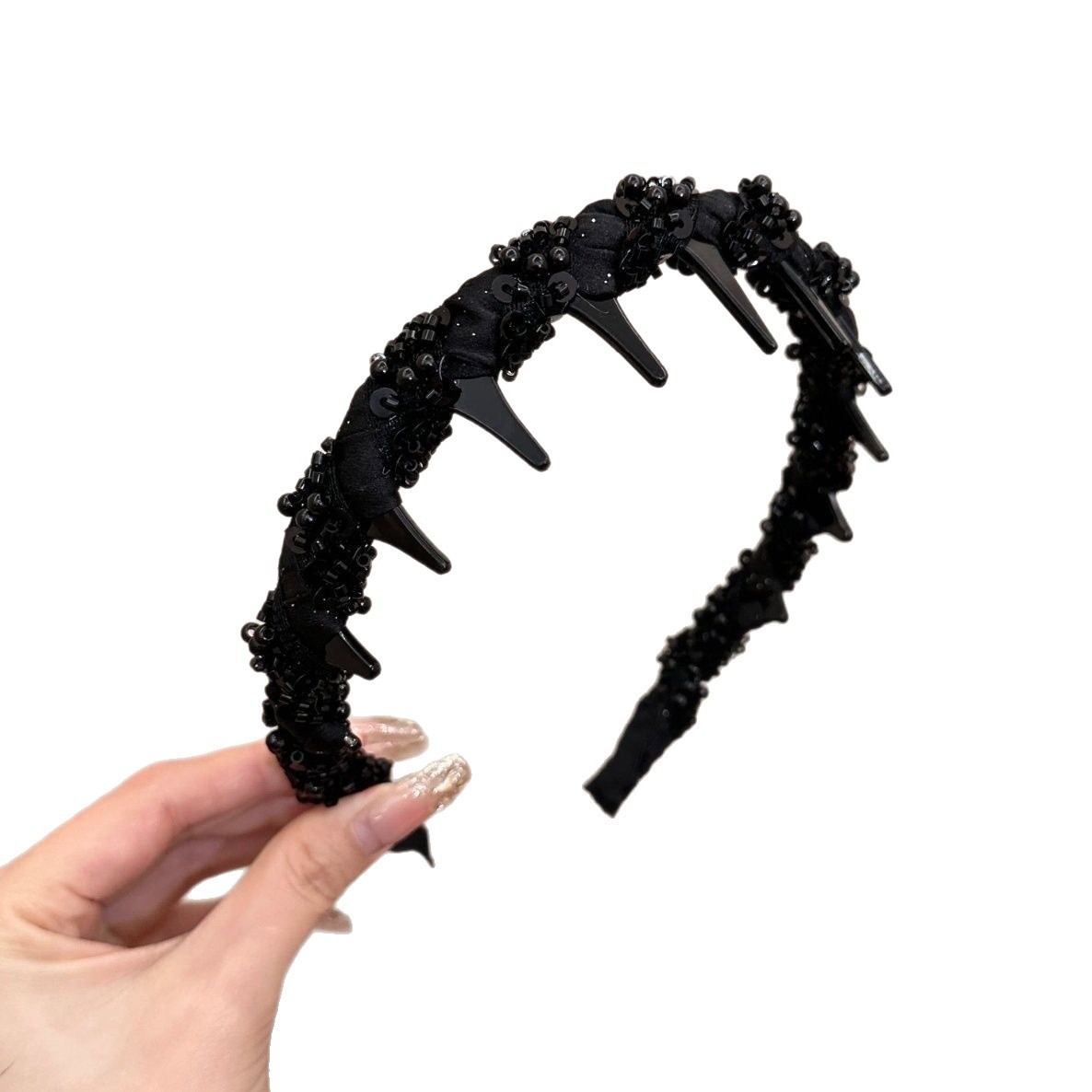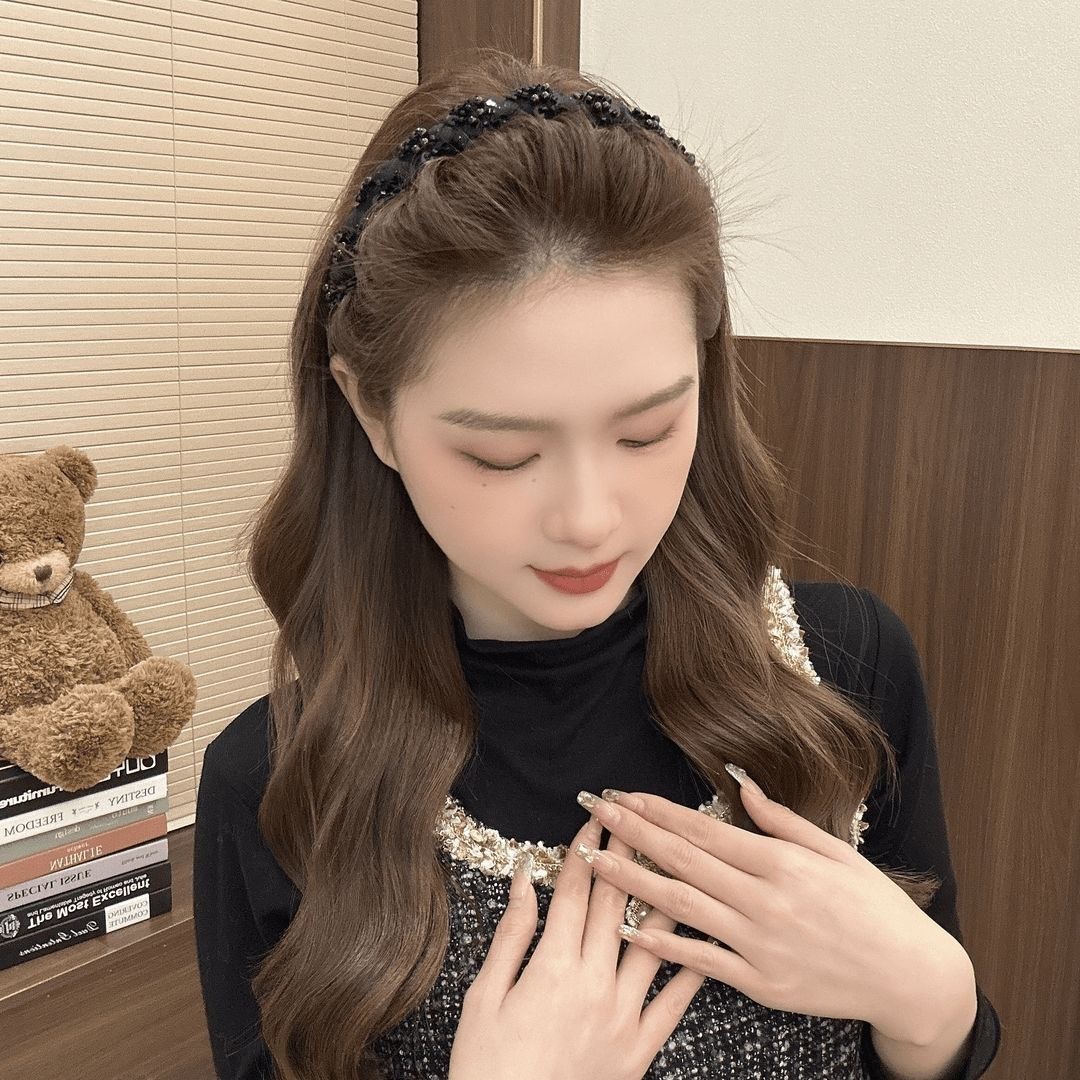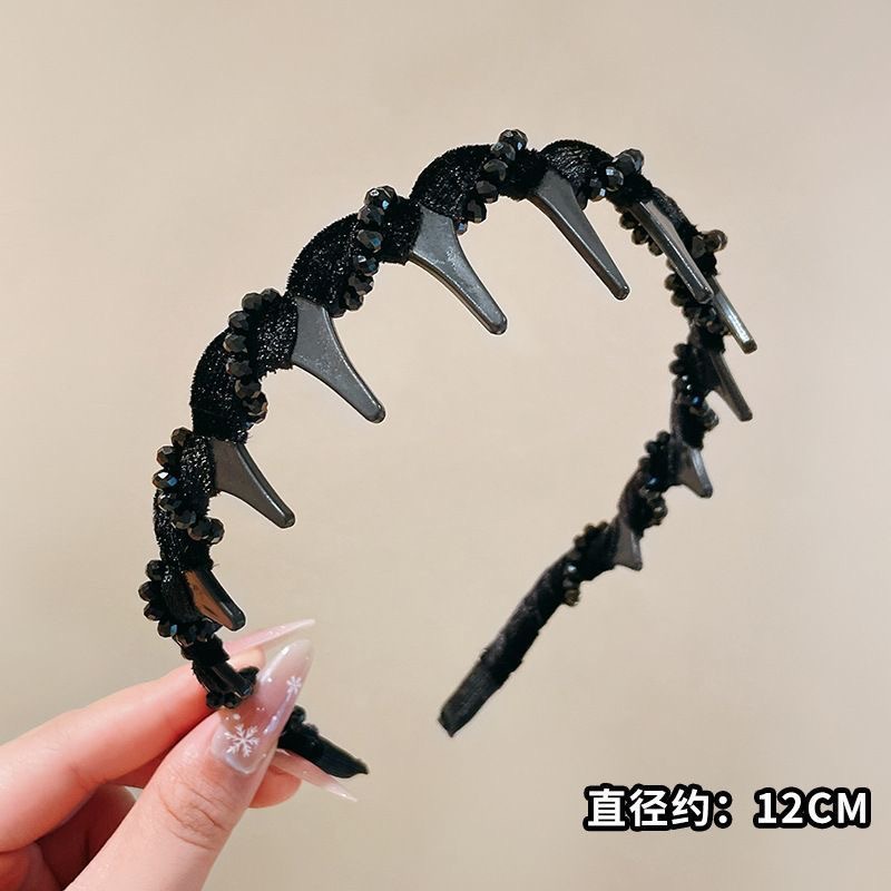 Повязка на голову принцессы Парижа; Бархатная повязка на голову с бриллиантами черного цвета; Обруч для волнистых волос - Янтарный; Волнистая повязка на голову - черная