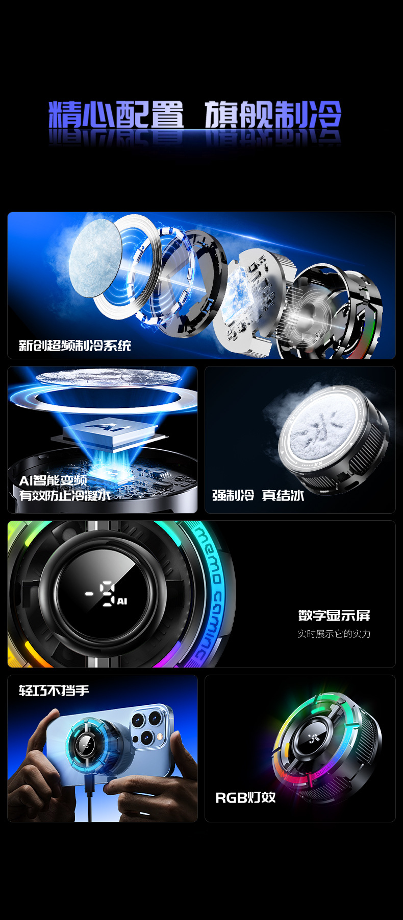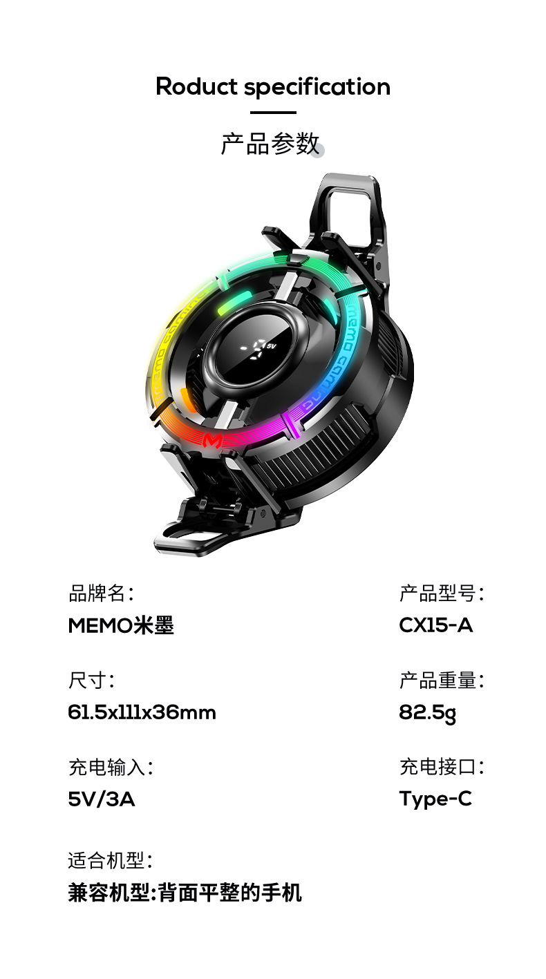 Новый мобильный телефонный радиатор MEMO MiMo CX15 высокой мощности с AI-магнитным задним зажимом, двойного назначения, полупроводниковое охлаждение