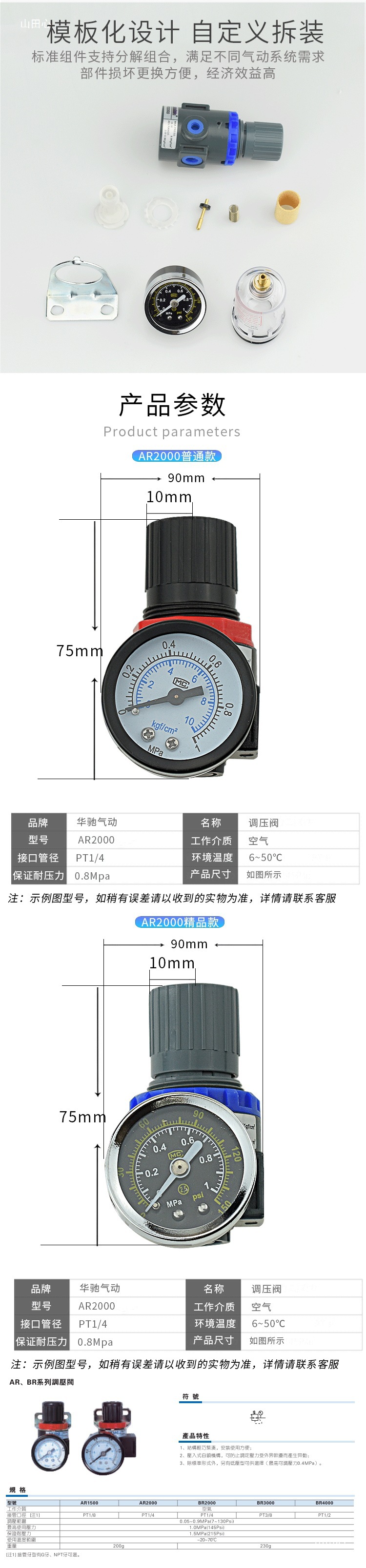Процессор воздушного источника, регулятор давления масла и воды, регулировка расхода BR/AR-2000/3000/4000, тип клапана регулятора давления