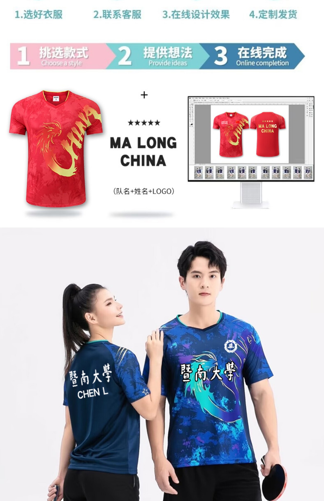 Индивидуальная форма для настольного тенниса, детская спортивная форма, мужская и женская форма для соревнований национальных сборных, тренировочная форма для летних игр с печатью.