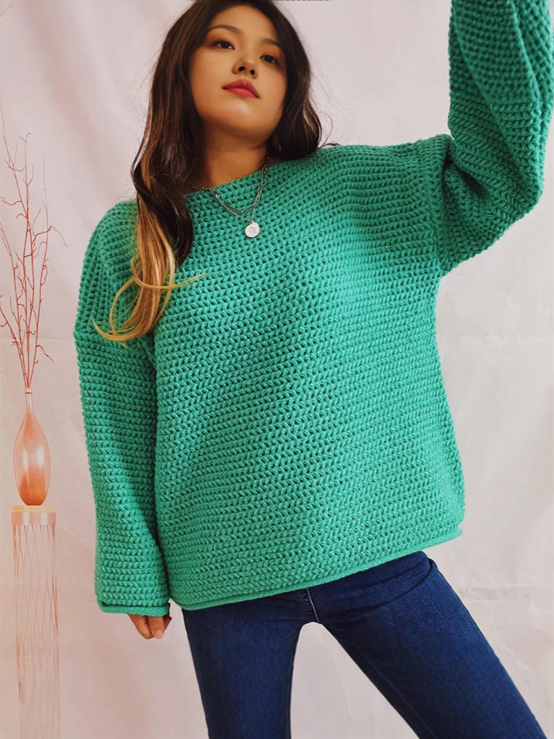 Толстовка из мягкой вощеной пряжи, свободного кроя, больших размеров, для осени и зимы, в стиле casual.