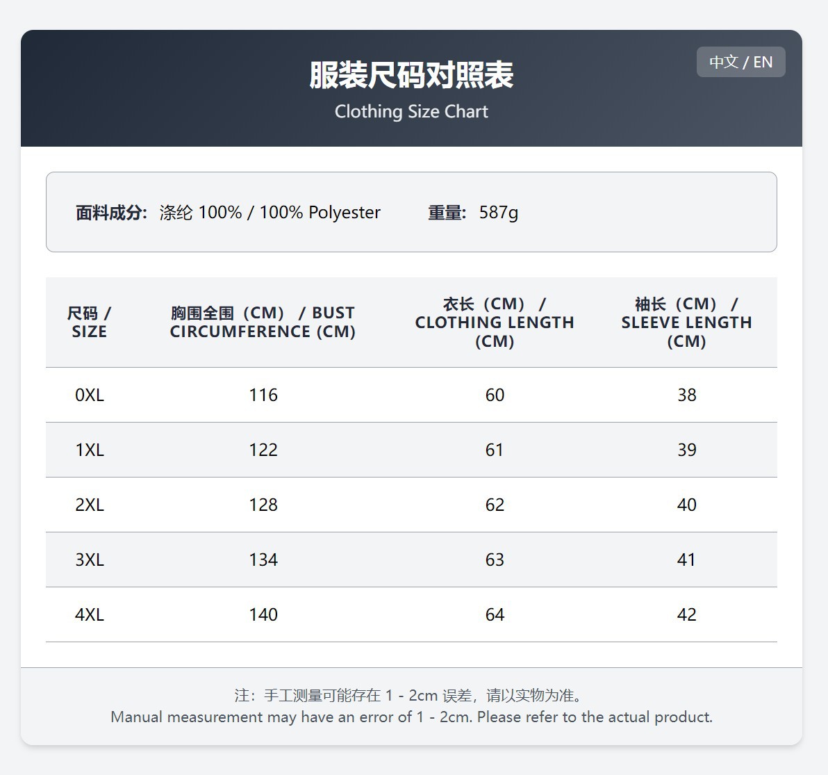 0XL; 1XL; 2XL; 3XL; 4XL; L