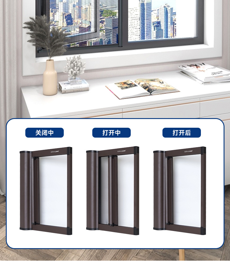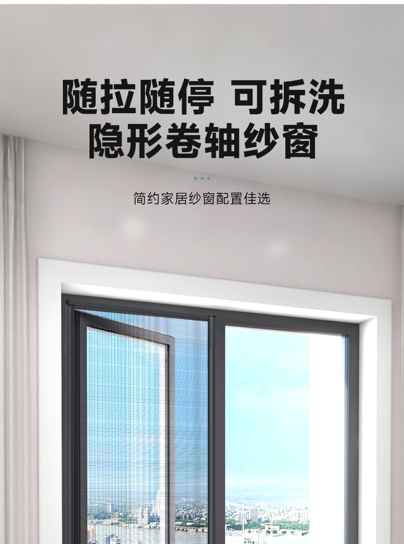 Невидимое окно Qinghe, тяните и останавливайте, моющееся, автоматическая рольставни, индивидуальный противомоскитный экран с высокой прозрачностью.