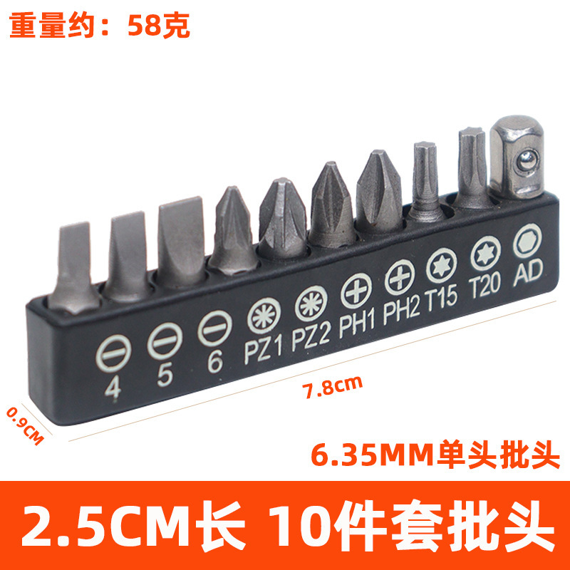 Комбинированный набор бит из 10 предметов, интерфейс 1/4, крестовая шестигранная отвертка Torx 25 мм, аксессуары для электрической дрели