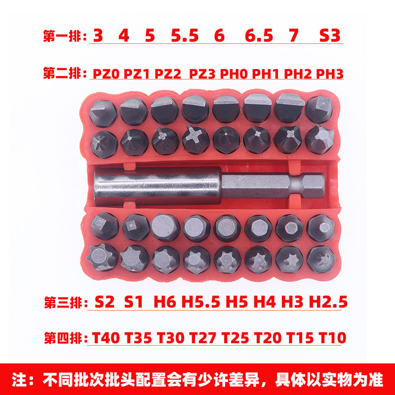 10 партий/58 г; 10 партий (5 см)/117 г; Набор из 33 предметов (обычный)/230 г; Полый набор из 33 предметов (специальная форма); 12 партий/80 г; Набор аксессуаров для электродрелей из 64 предметов.