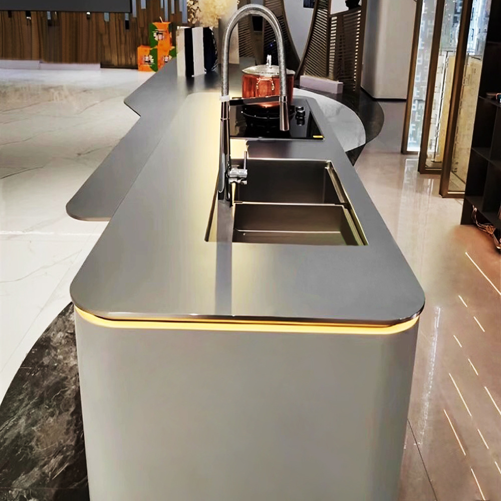Кухонный остров из нержавеющей стали 304 с интегрированной раковиной и варочной панелью, бесшовное соединение