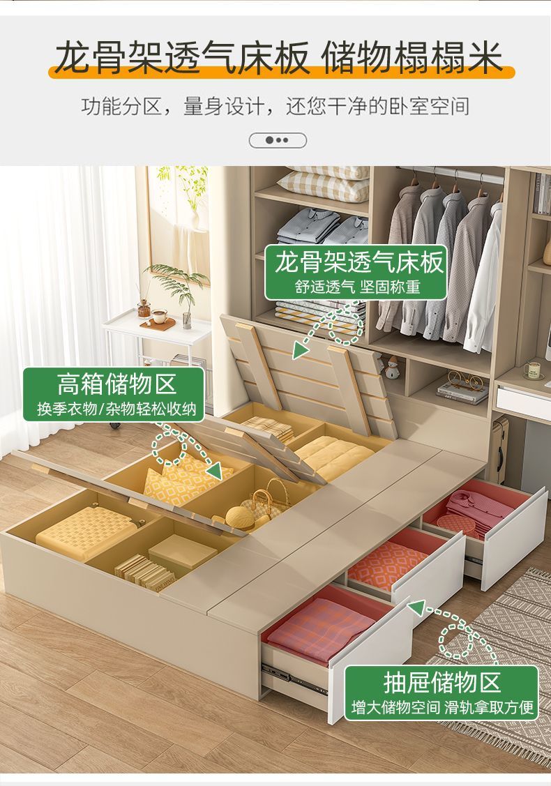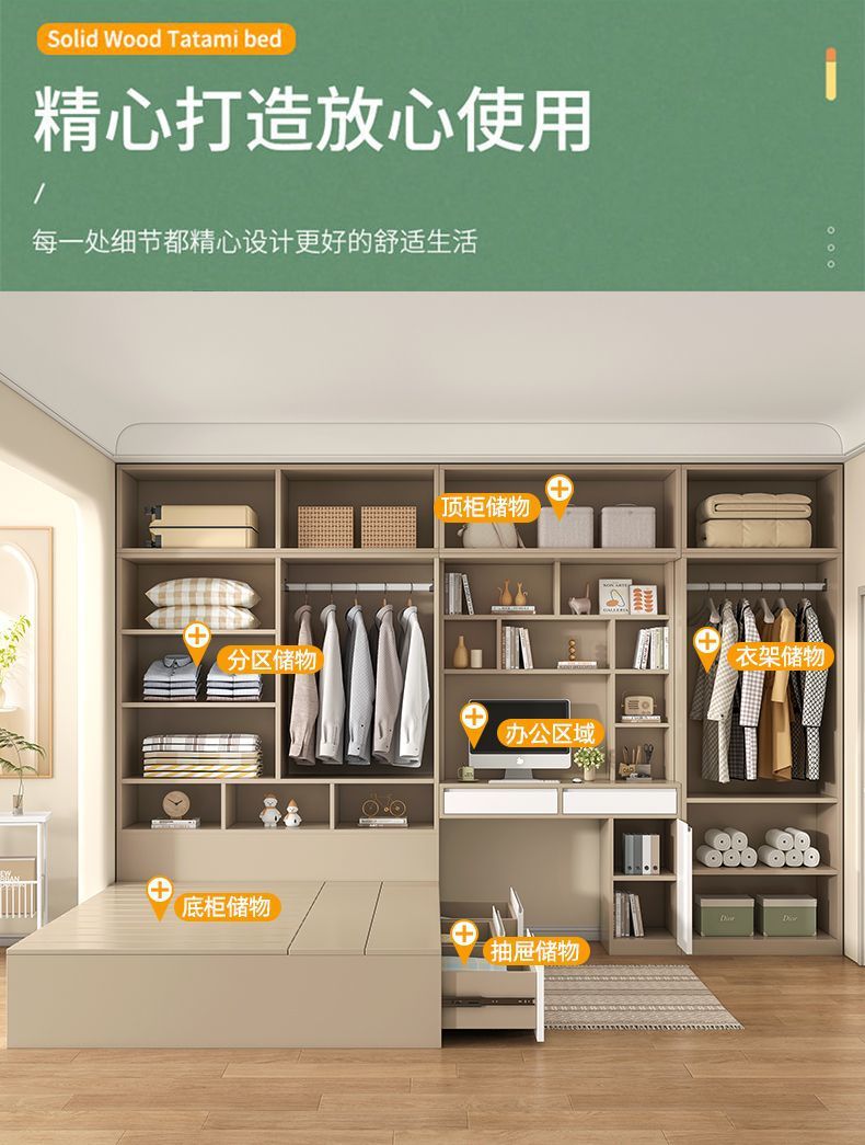 Татами кровать с встроенным шкафом, детская кровать для маленькой квартиры, многофункциональный шкаф для хранения в спальне, комбинированный гардеробный шкаф-кровать
