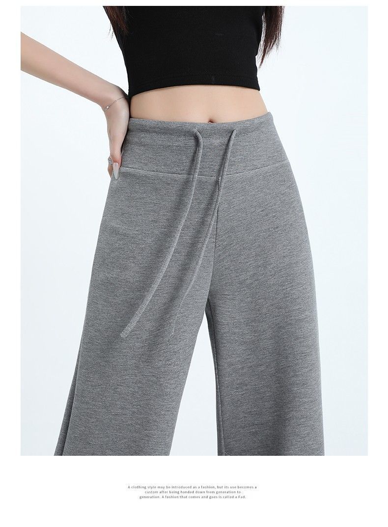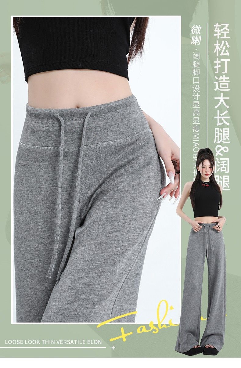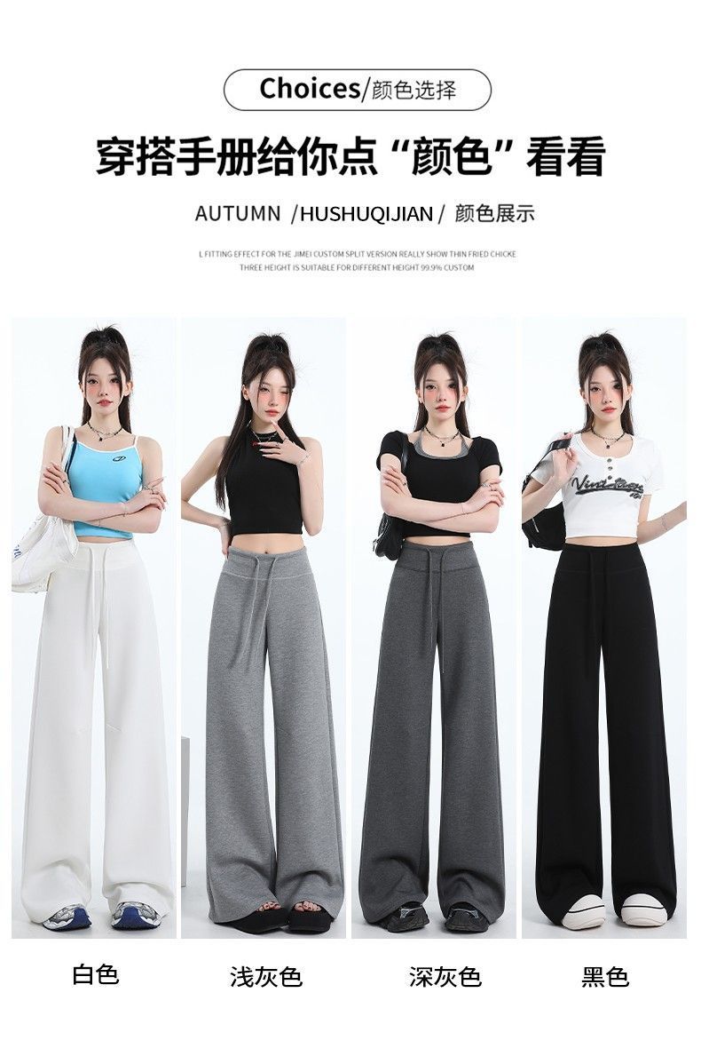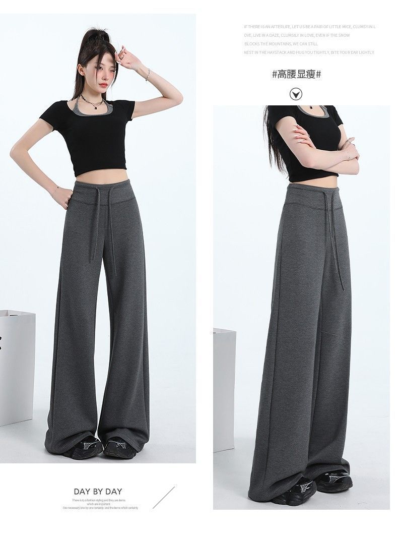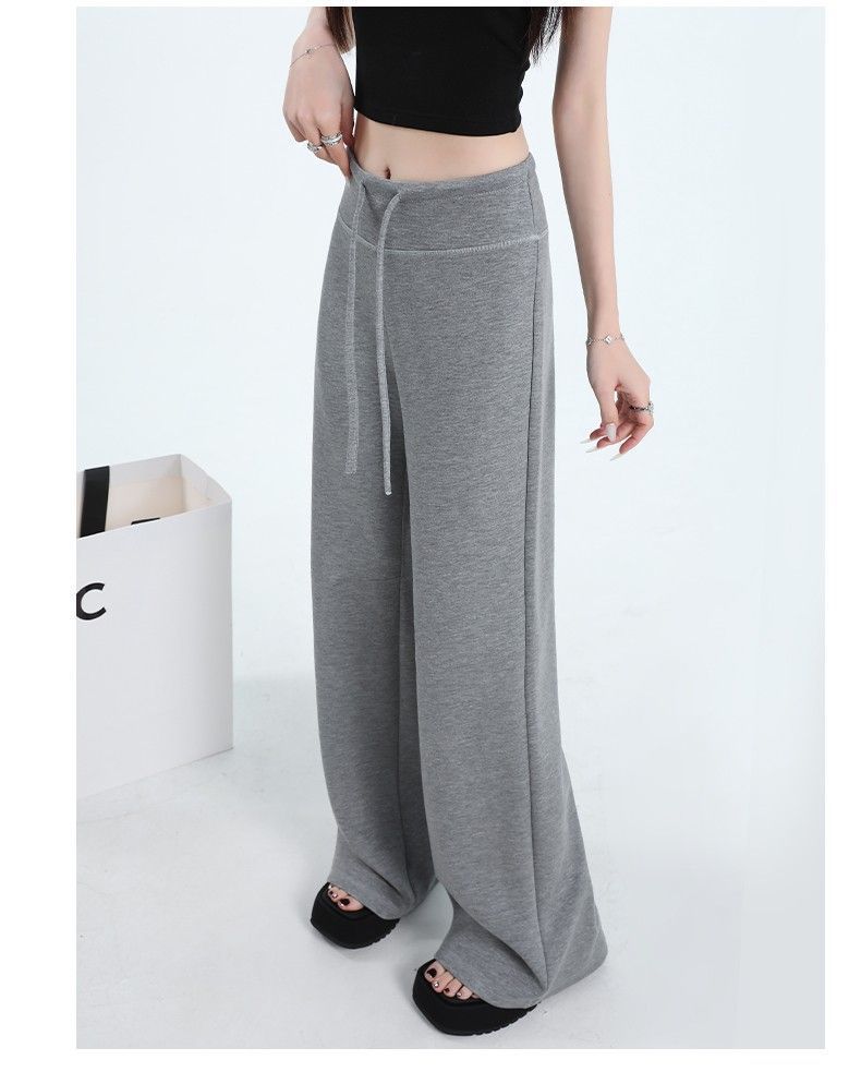Новые женские спортивные штаны весны и осени, повседневные брюки из воздушного хлопка, утягивающие спортивные брюки с высокой талией и завязками в американском стиле, прямые драпированные широкие брюки