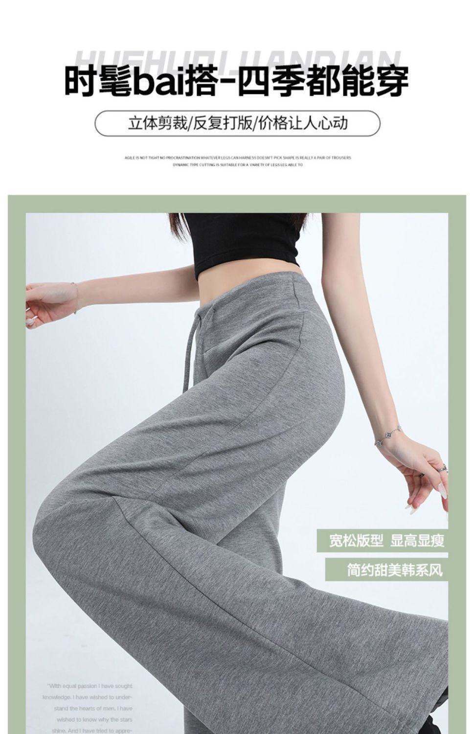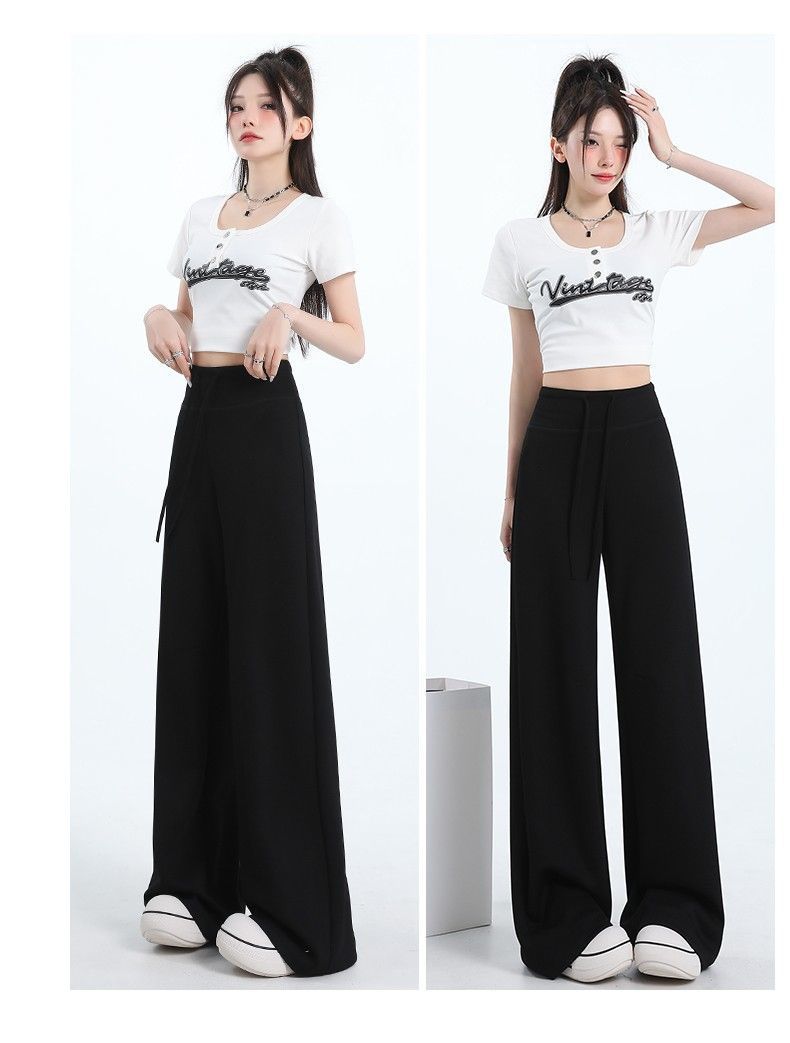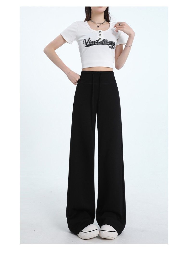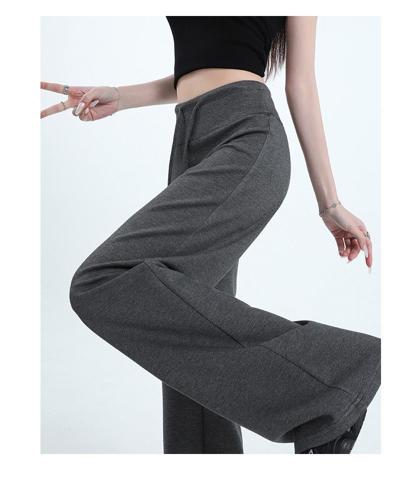 Новые женские спортивные штаны весны и осени, повседневные брюки из воздушного хлопка, утягивающие спортивные брюки с высокой талией и завязками в американском стиле, прямые драпированные широкие брюки