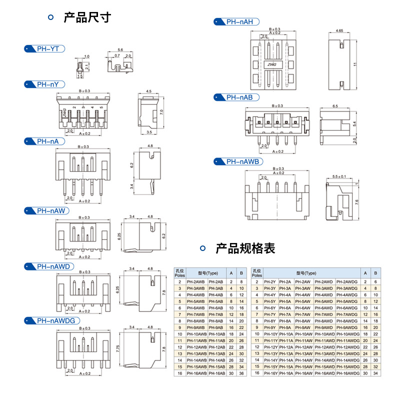 Разъемы с шагом 2,0 мм: вертикальные и горизонтальные, 2-16 контактов, для поверхностного монтажа