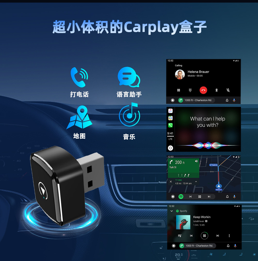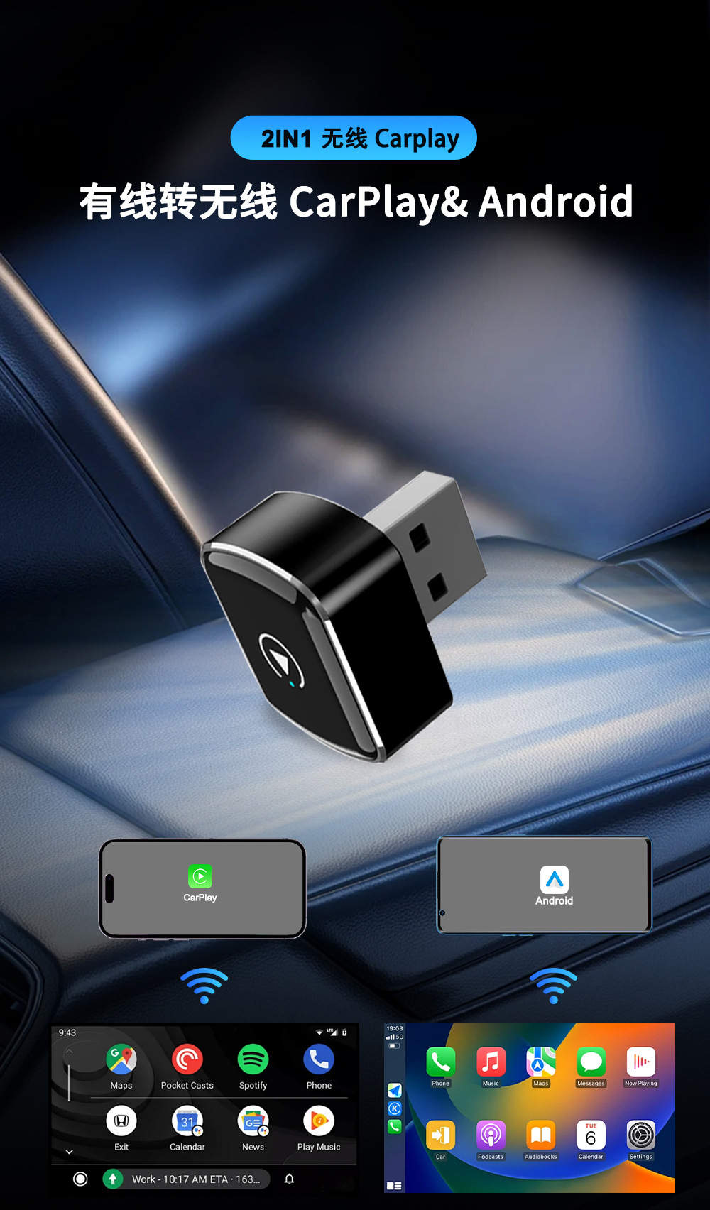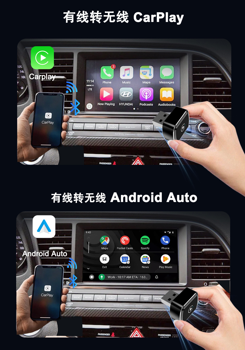 Карплей-бокс, беспроводное соединение, подходит для проводного подключения к автомобильной навигации Apple Android, двухрежимное соединение «два в одном»