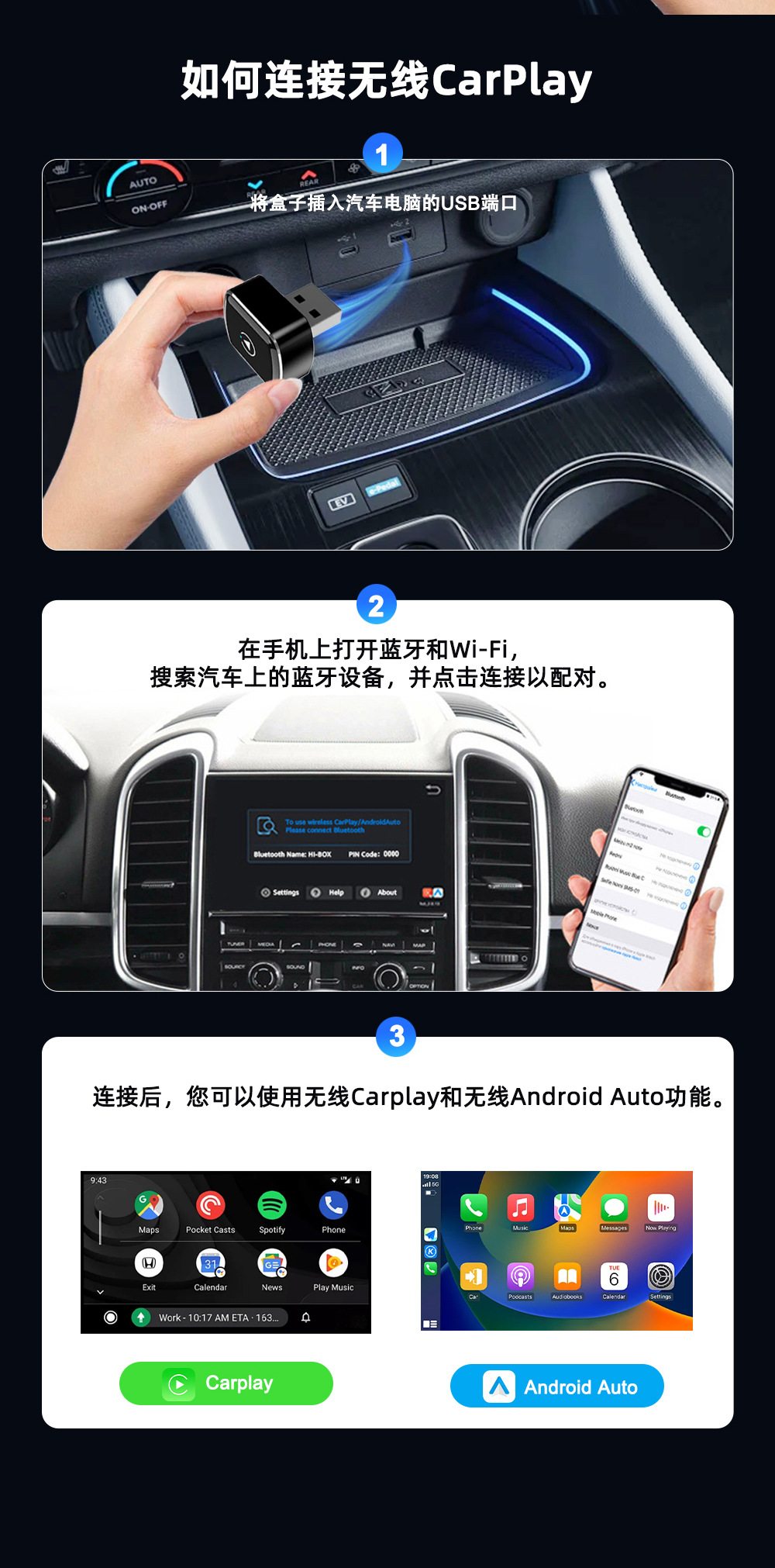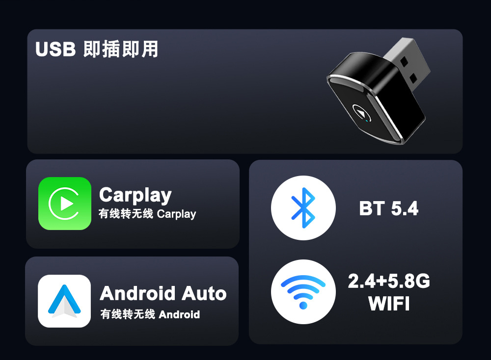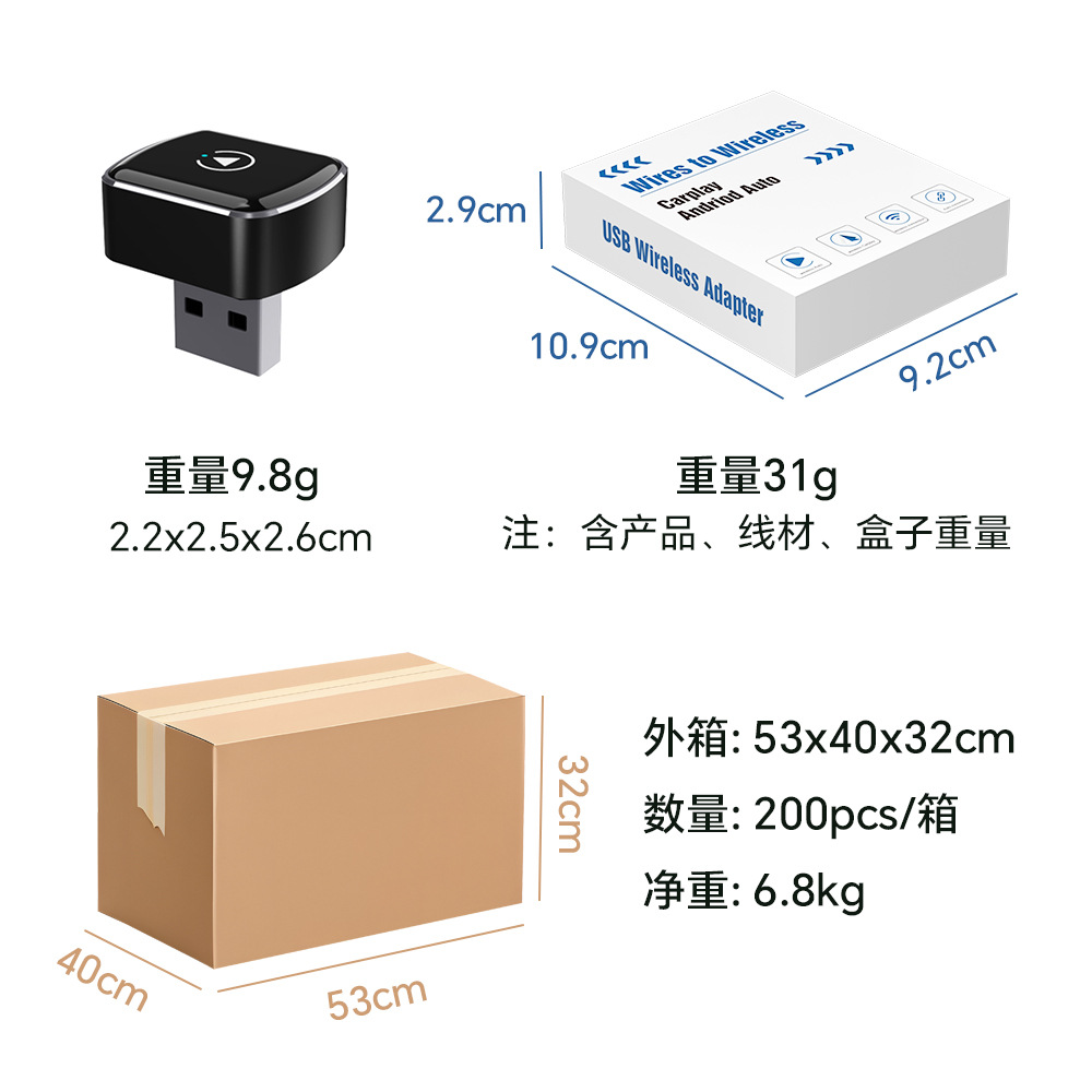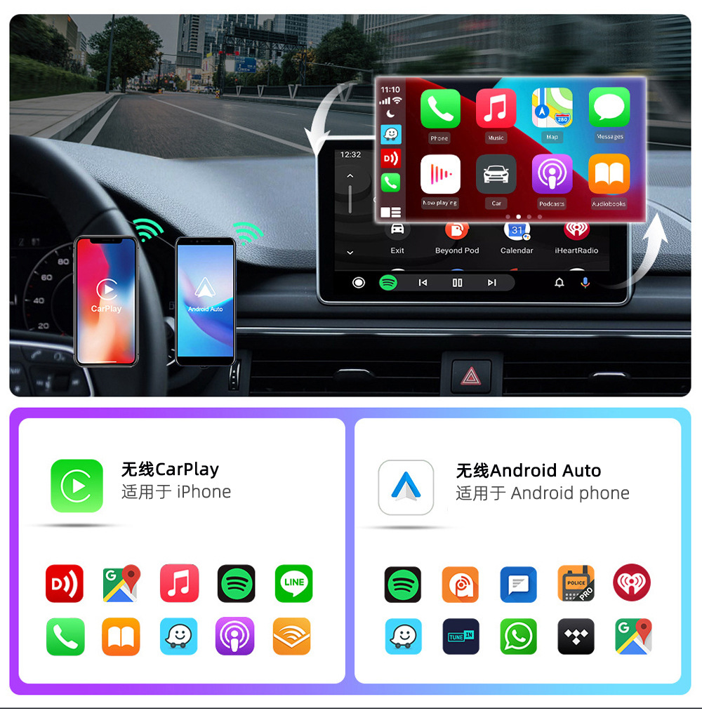 Карплей-бокс, беспроводное соединение, подходит для проводного подключения к автомобильной навигации Apple Android, двухрежимное соединение «два в одном»