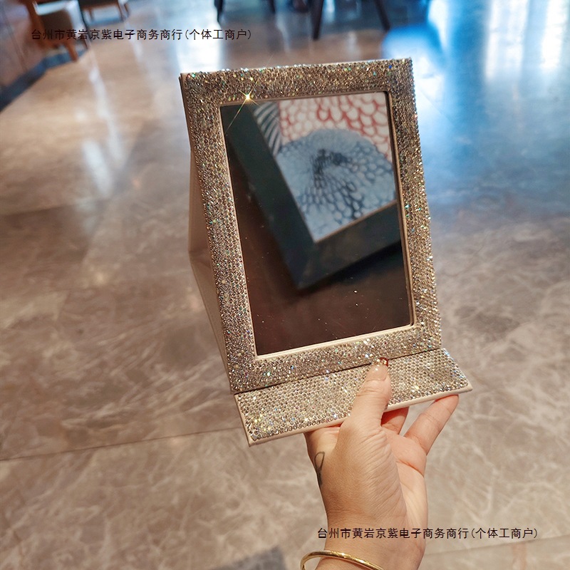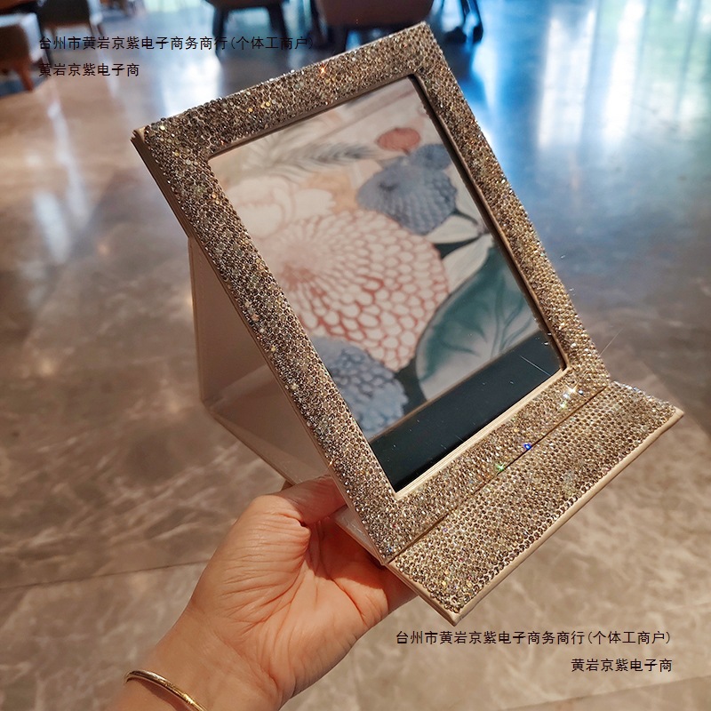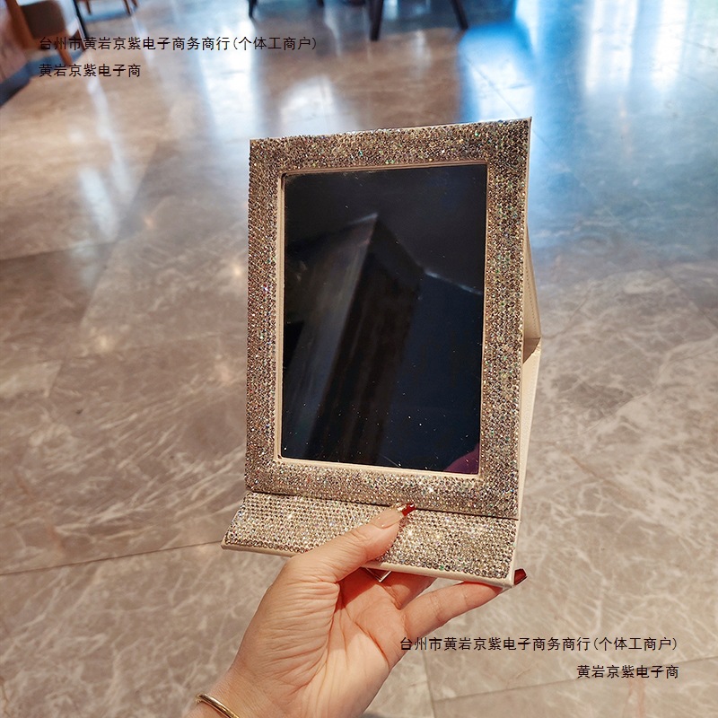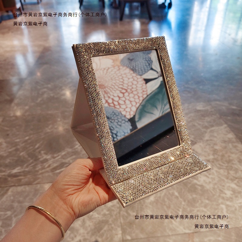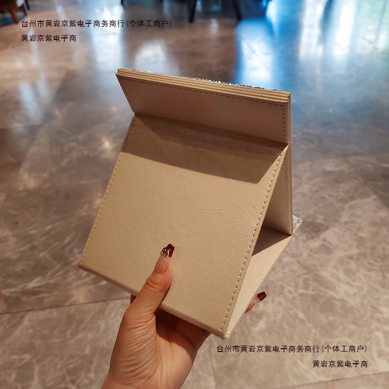 Женское кожаное зеркало для макияжа, инкрустированное бриллиантами, портативное простое настольное блестящее складное настольное зеркало высокой четкости, бесплатная доставка