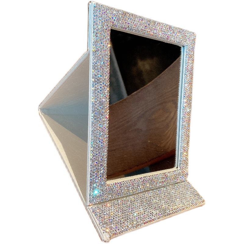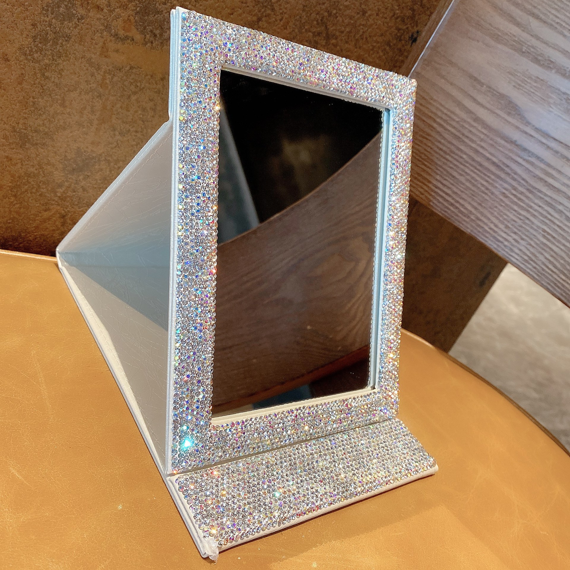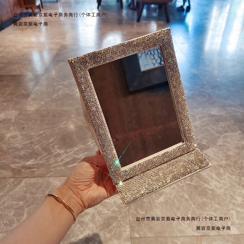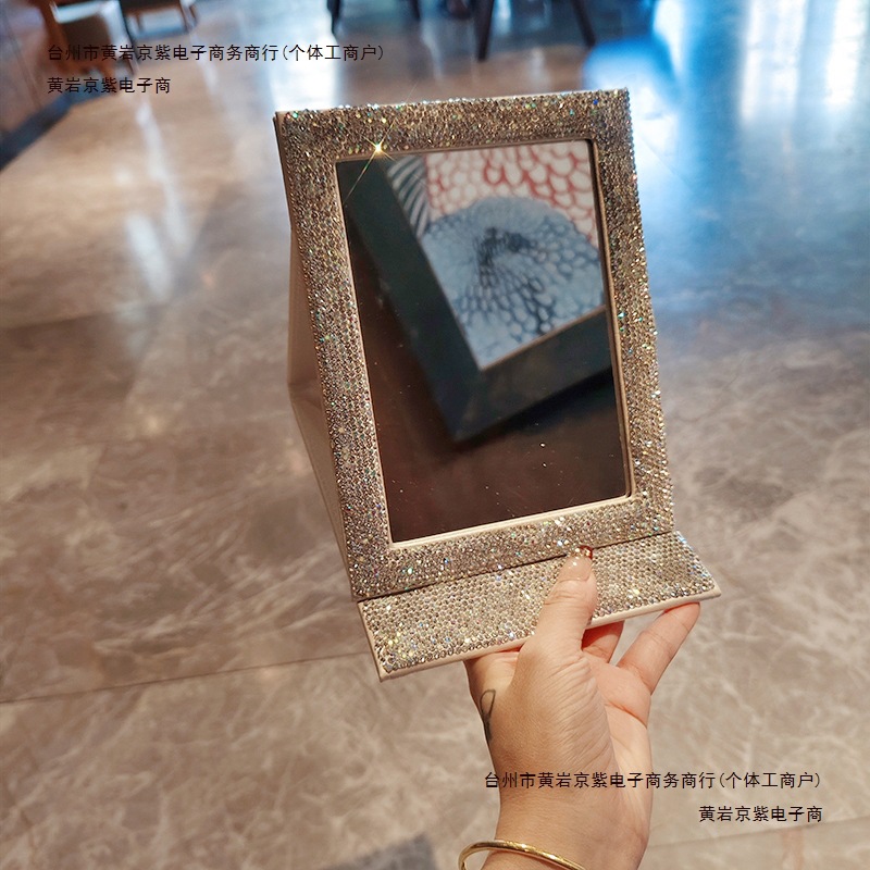 Женское кожаное зеркало для макияжа, инкрустированное бриллиантами, портативное простое настольное блестящее складное настольное зеркало высокой четкости, бесплатная доставка