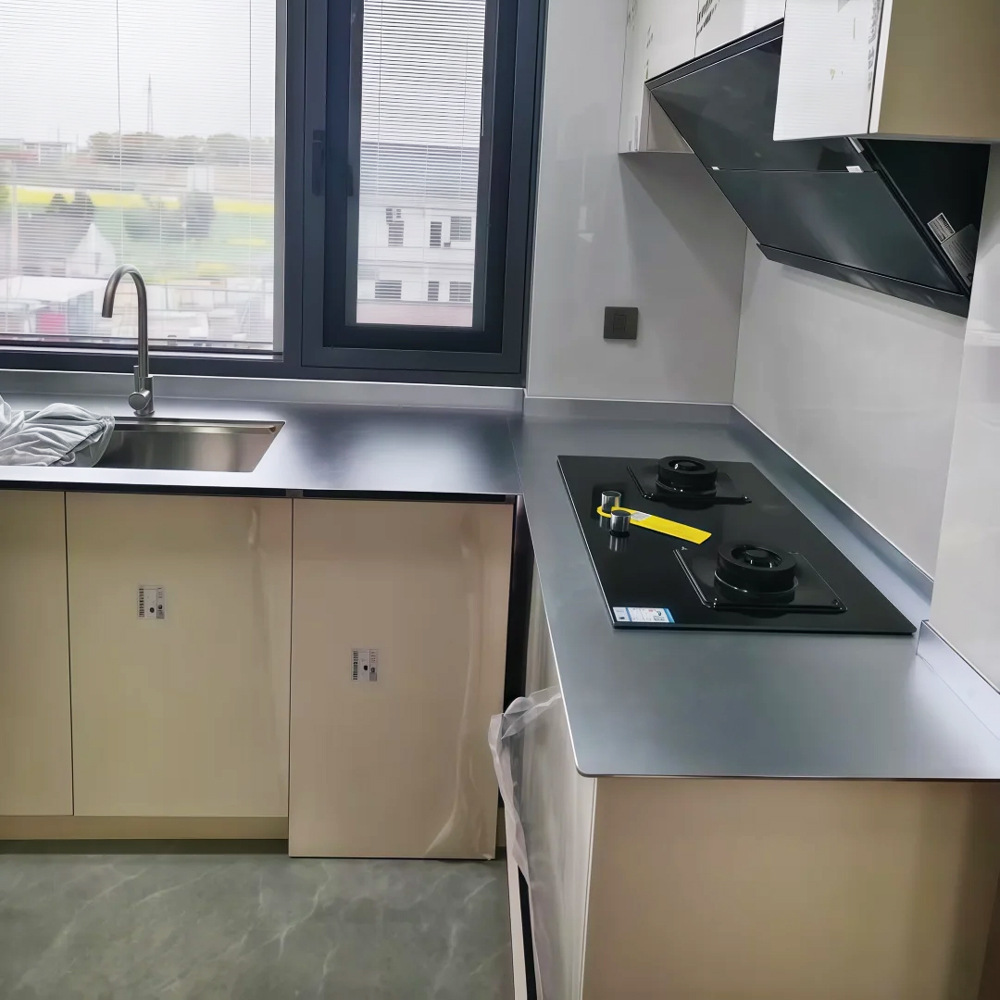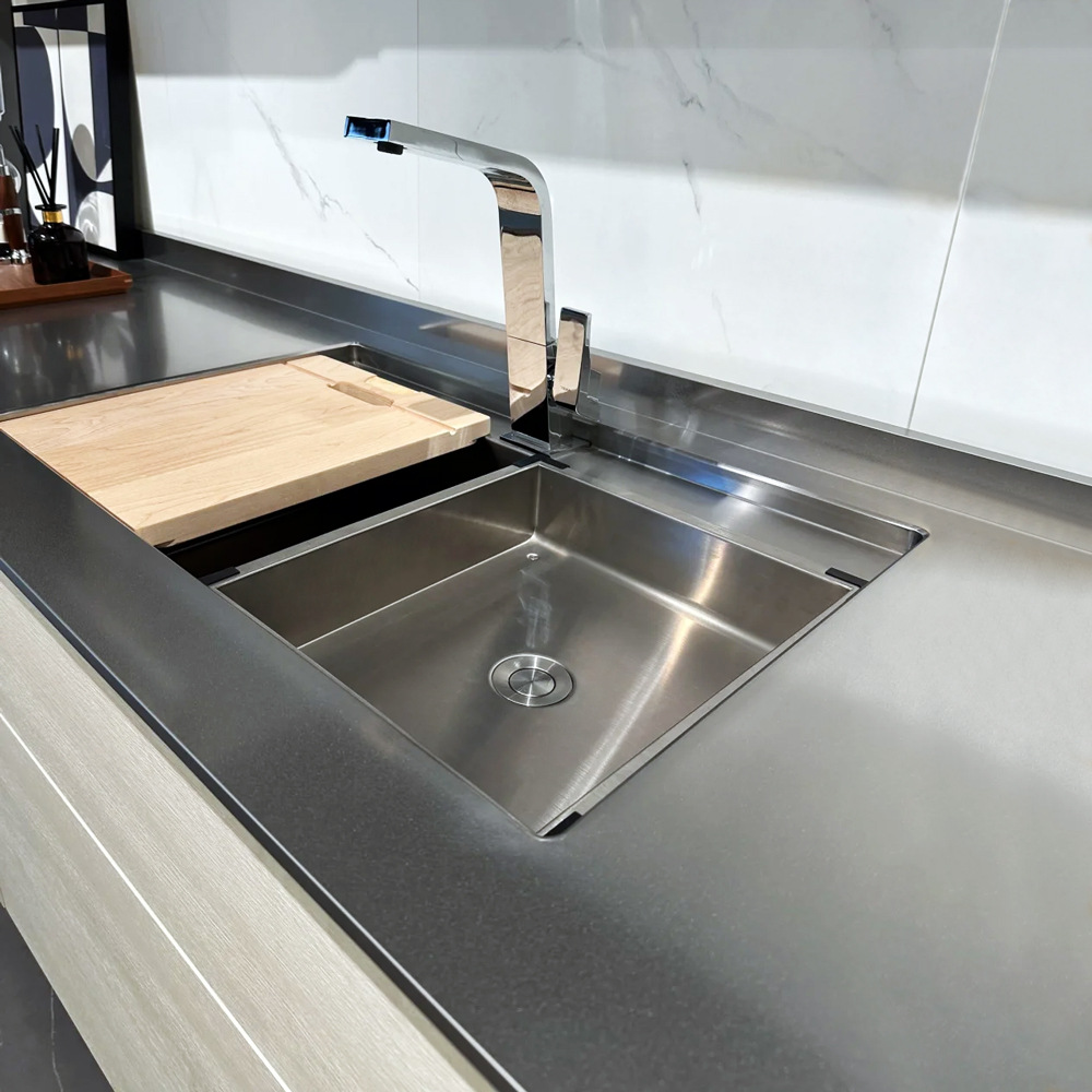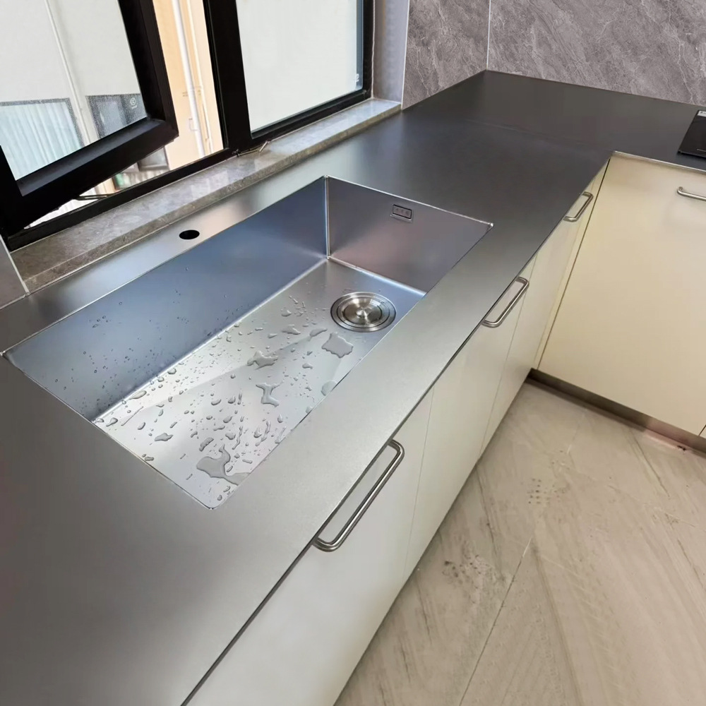 Настольный шкаф из нержавеющей стали 304 в японском стиле, простая кухонная столешница толщиной 5 мм, встроенная раковина с песком звездного неба