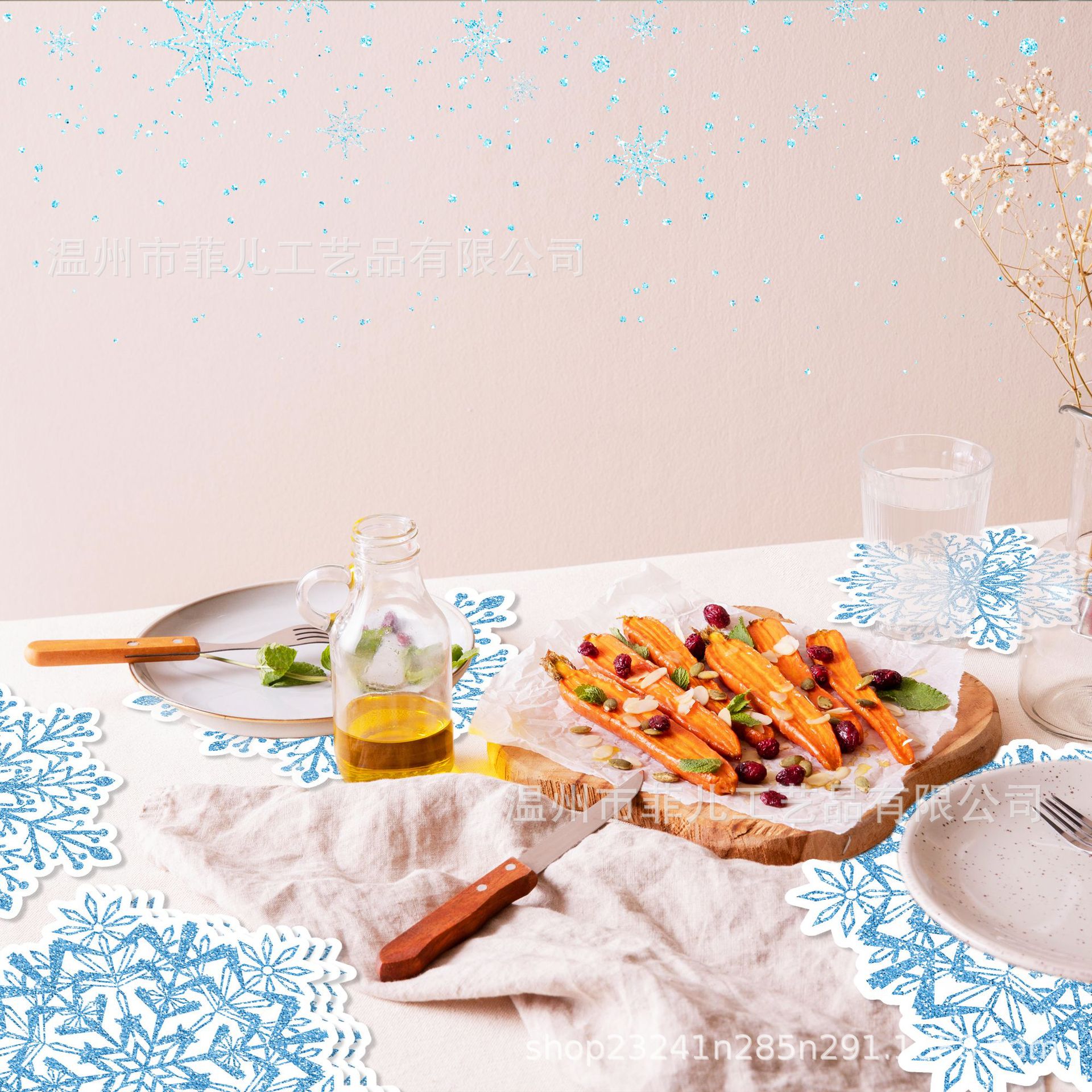CA034-2 Специальная форма синей снежинки, подставка для столовых приборов, атмосфера дня рождения, одноразовая подставка для столовых приборов, рождественский декоративный бумажный коврик