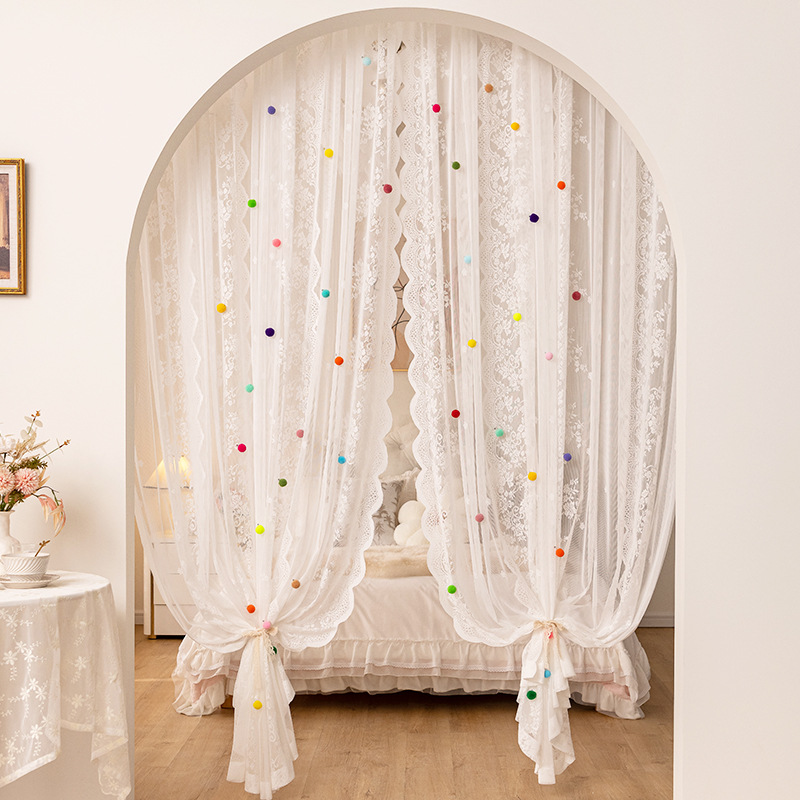 Свежие кружевные прозрачные шторы в корейском стиле для девочек, спальня в стиле принцессы, детская комната, французская занавеска, перегородка, дверная занавеска, штора.