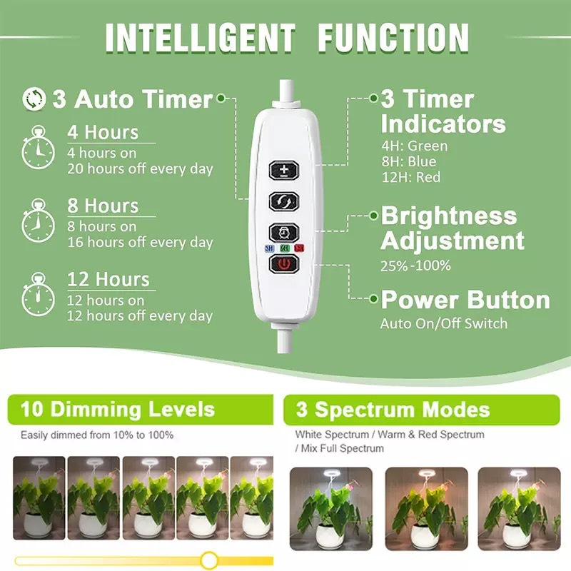Светодиодная выдвижная лампа для растений, свет для роста растений, красный и синий свет, настольная лампа полного спектра с регулируемой яркостью, дополнительное освещение для цветов.