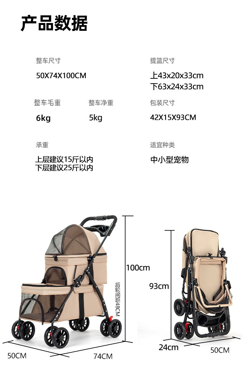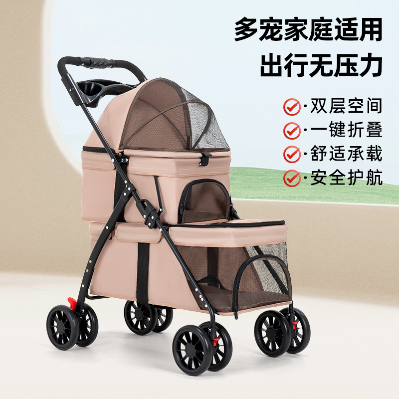 Двухслойная коляска для домашних животных малого и среднего размера, отдельная коляска для собак и кошек, легкая верхняя и нижняя коляска для домашних животных на открытом воздухе, оптовая продажа через границу