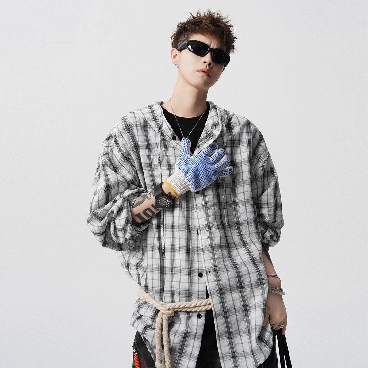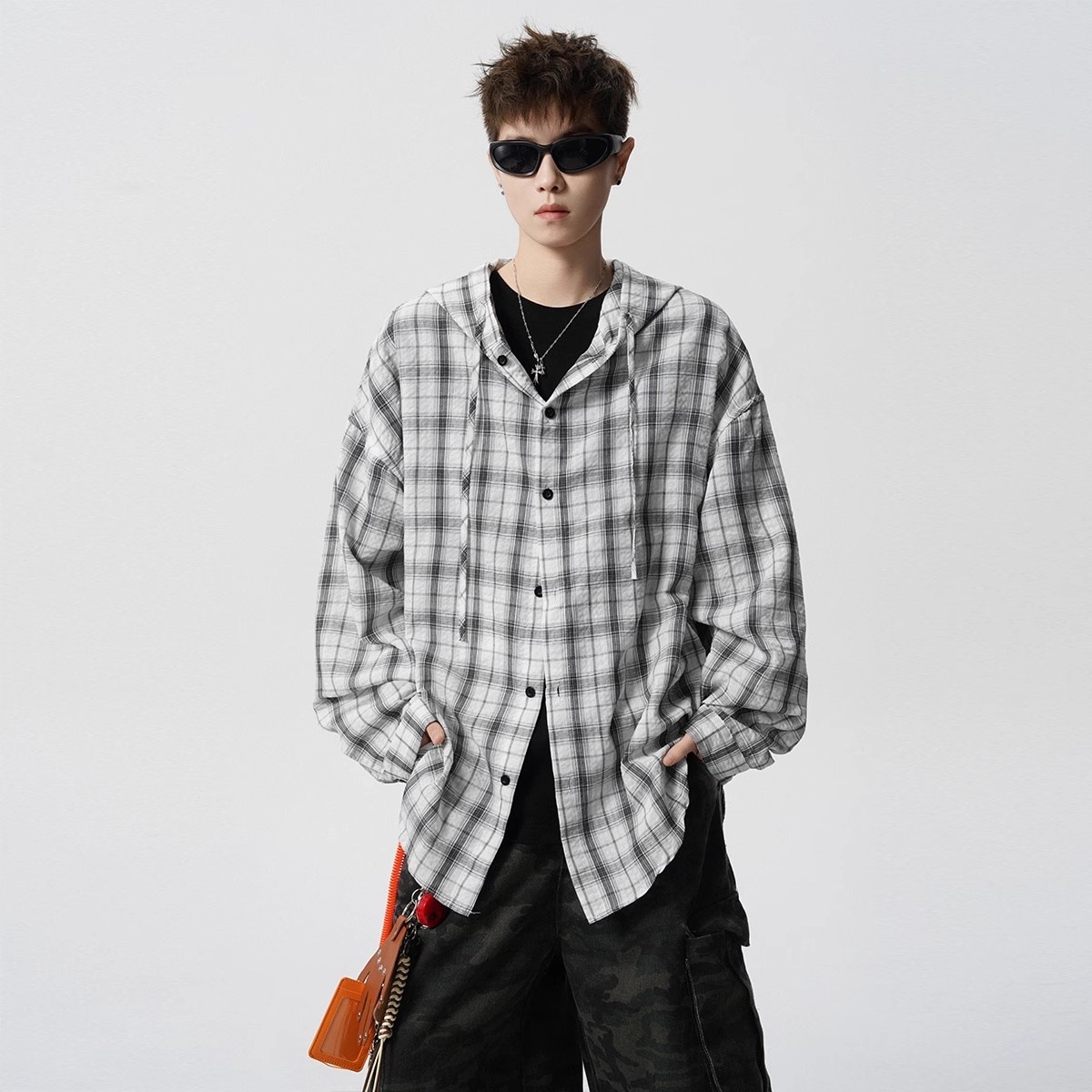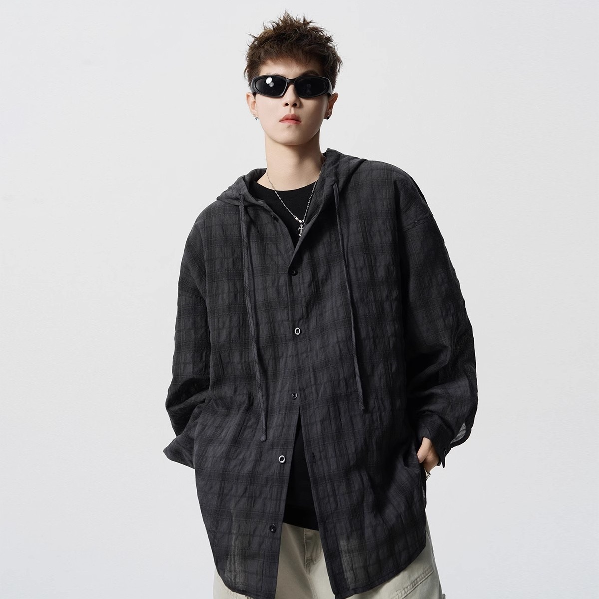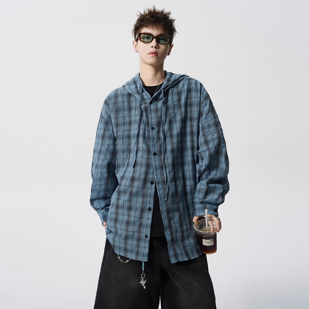 Защитная рубашка с американским узором в сетку, тонкая мужская летняя рубашка в ленивом стиле, кардиган, верхняя одежда, свободная рубашка для пары, рубашка с длинными рукавами
