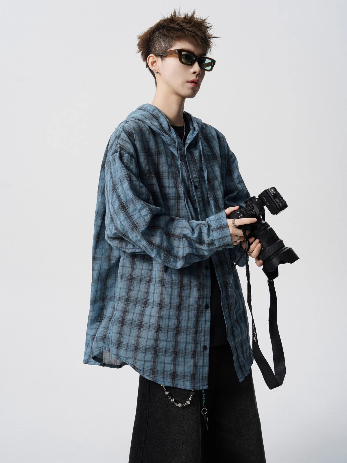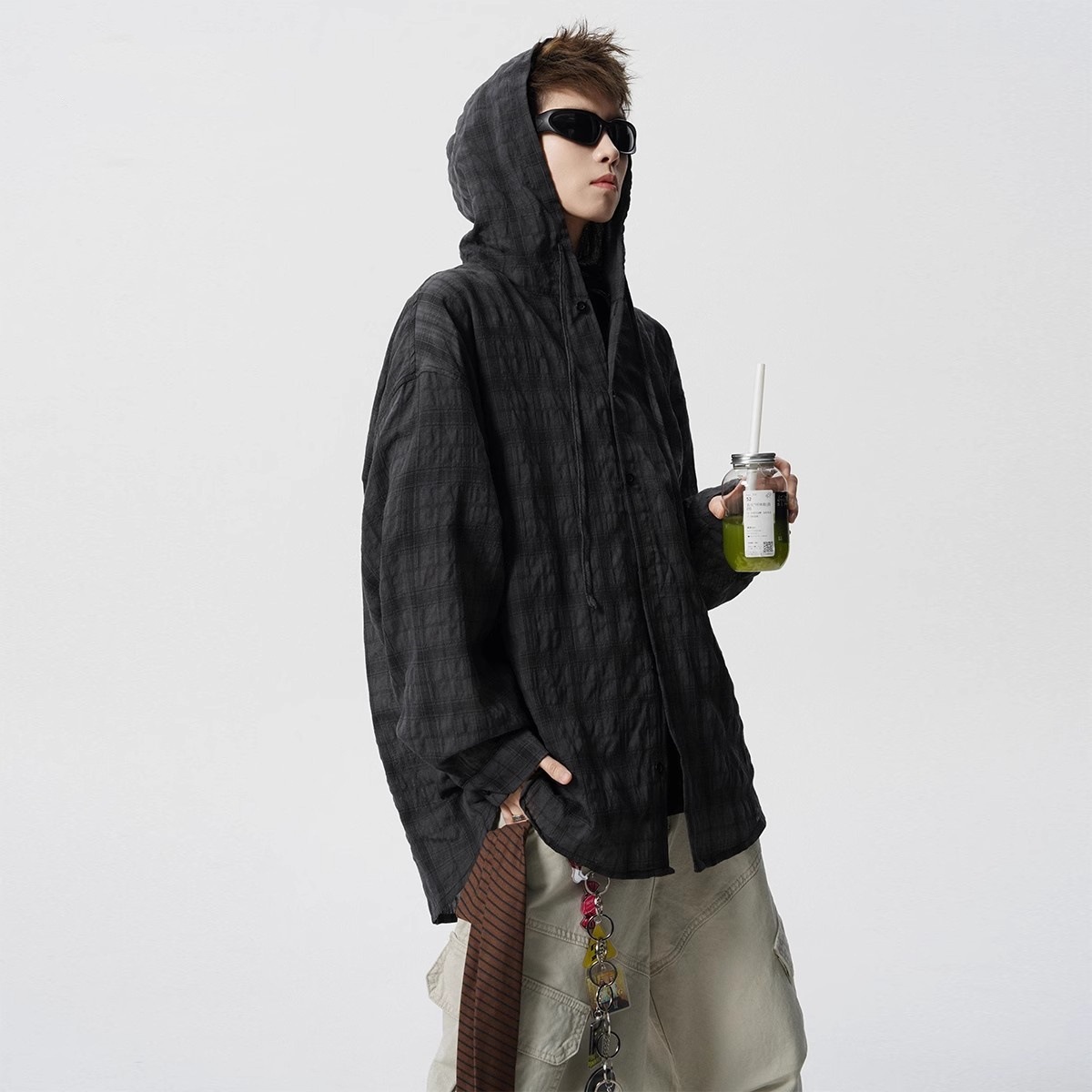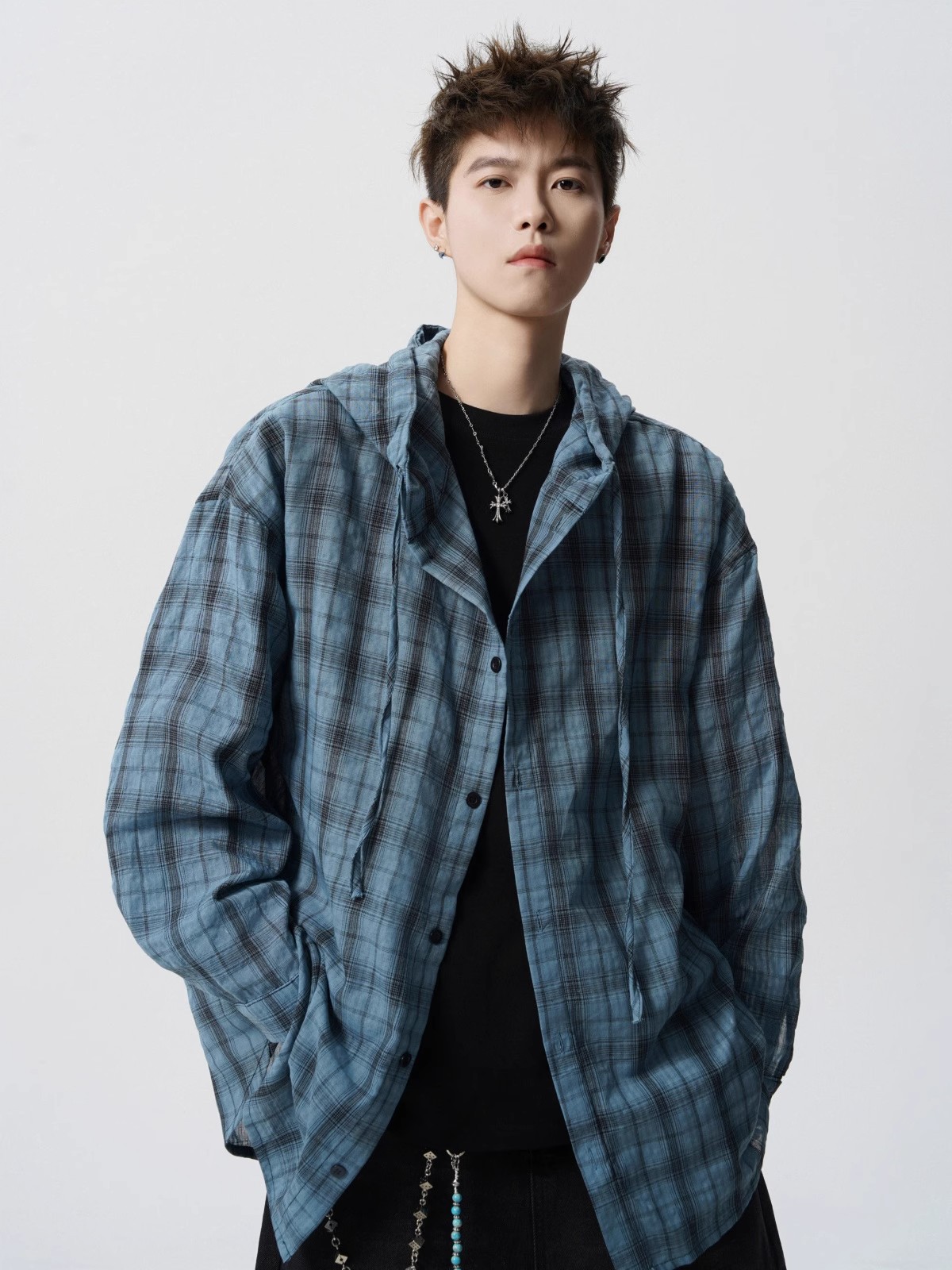 Защитная рубашка с американским узором в сетку, тонкая мужская летняя рубашка в ленивом стиле, кардиган, верхняя одежда, свободная рубашка для пары, рубашка с длинными рукавами