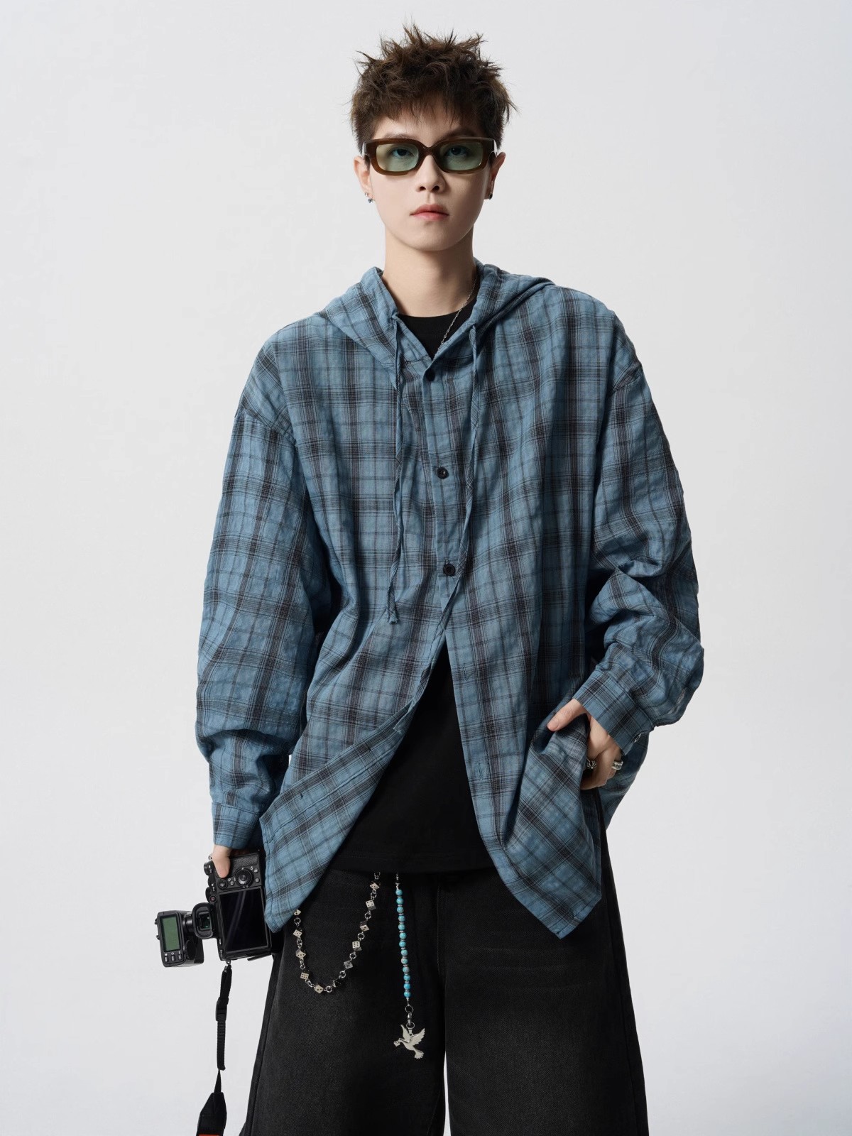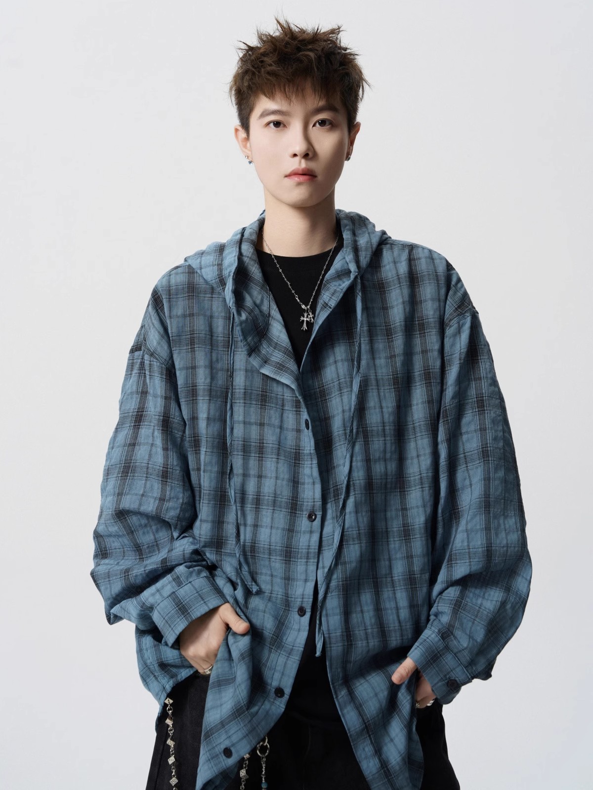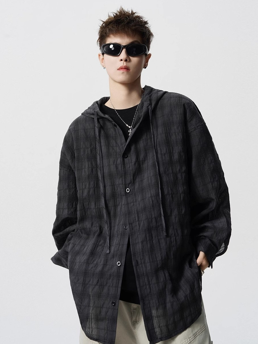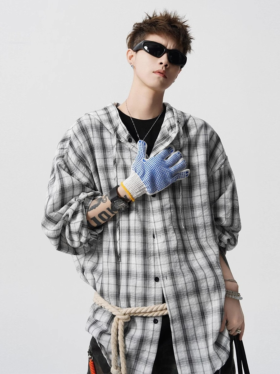 Защитная рубашка с американским узором в сетку, тонкая мужская летняя рубашка в ленивом стиле, кардиган, верхняя одежда, свободная рубашка для пары, рубашка с длинными рукавами