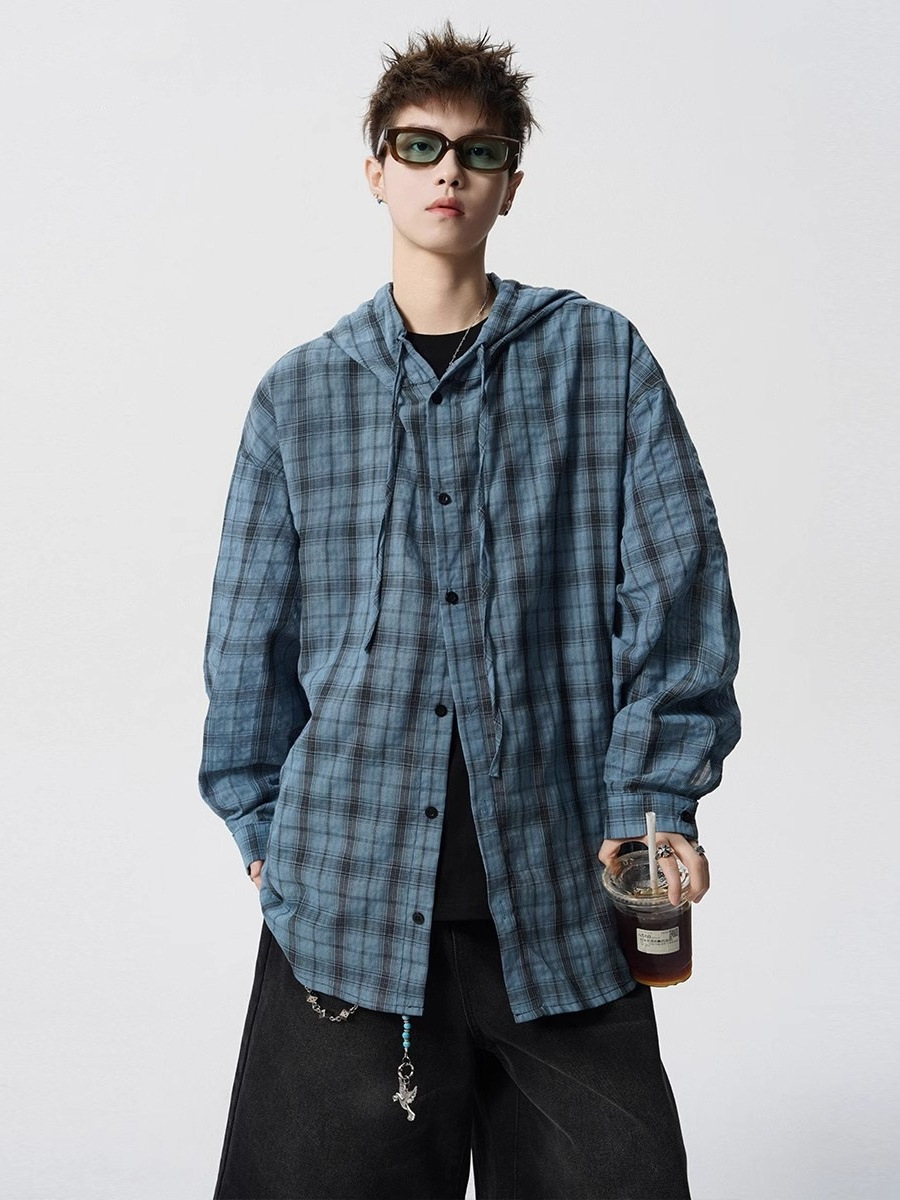 Американская клетчатая солнцезащитная рубашка, тонкая мужская летняя куртка-кардиган в ленивом стиле, свободная рубашка с длинными рукавами для пар