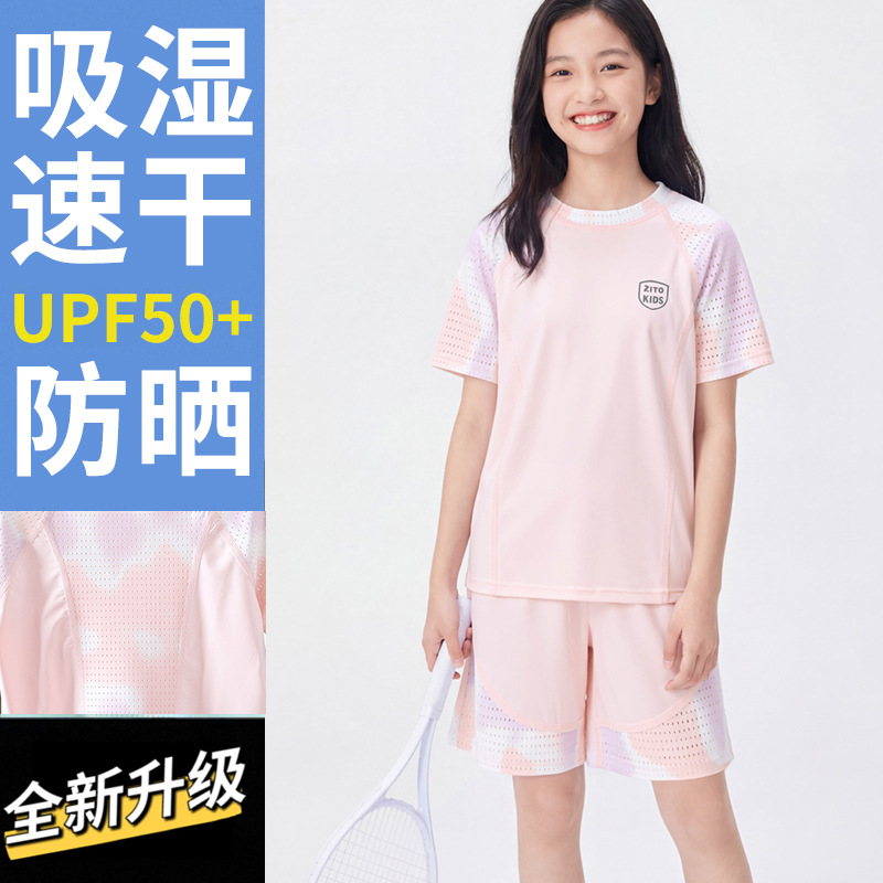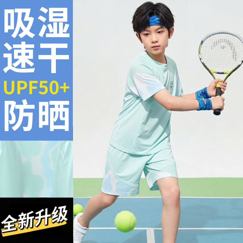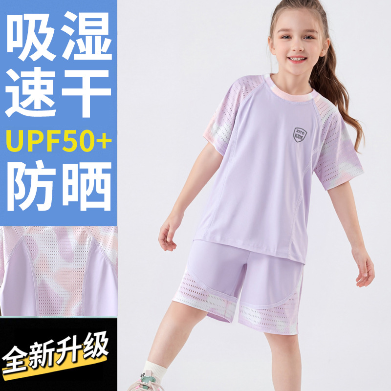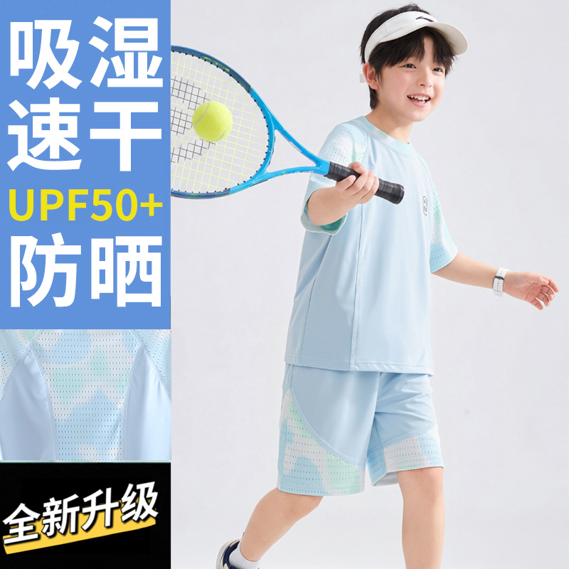 Детский летний спортивный быстросохнущий костюм, защита от солнца, шорты с короткими рукавами, костюм UPF50 + Ice-sense, костюм с короткими рукавами для улицы