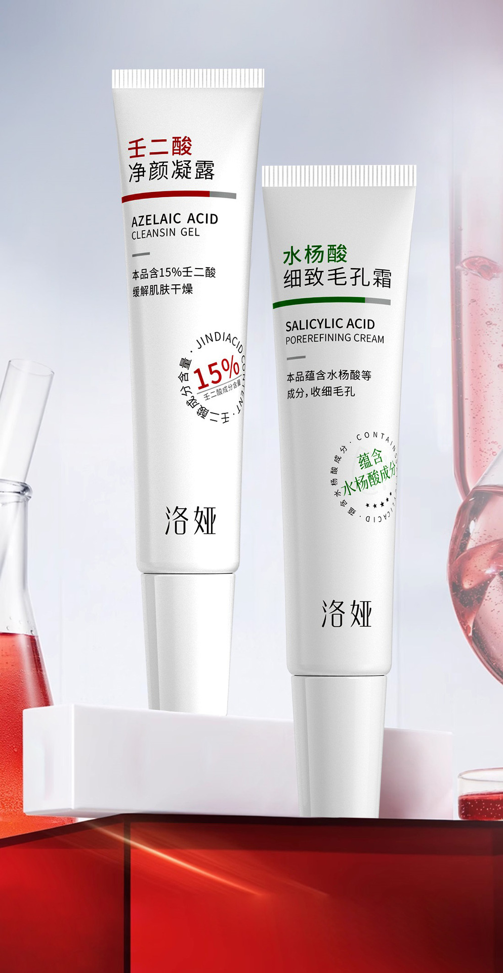 Очищающий гель с азелаиновой кислотой Loya 30 мл; Крем для очищения пор с салициловой кислотой Loya, 30 мл; Лойа азелаиновая кислота + салициловая кислота [комбинация]