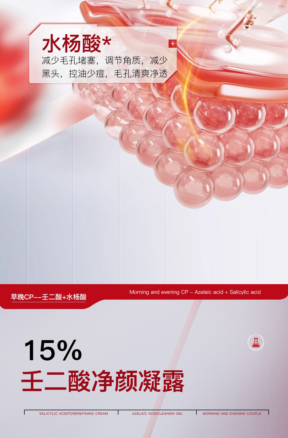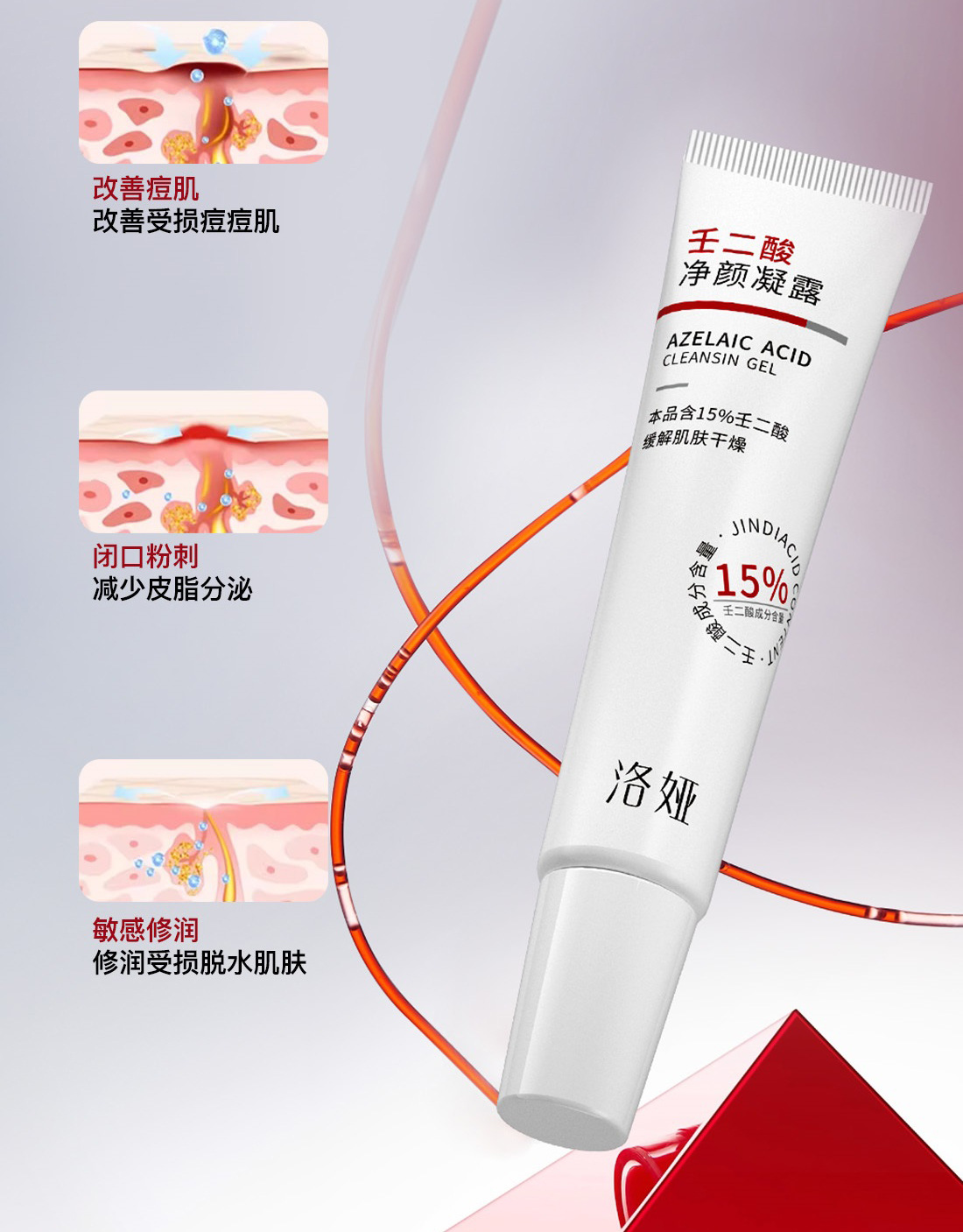 Очищающий гель с 15% азелаиновой кислотой улучшает черные точки и прыщи Крем с салициловой кислотой для пор сужает поры и уменьшает следы от прыщей