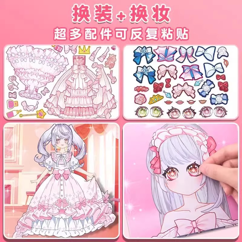 Готовые наклейки принцессы для девочек и детей, развивающие игрушки, мультяшные наклейки ручной работы, сверкающие наклейки для макияжа, справочник