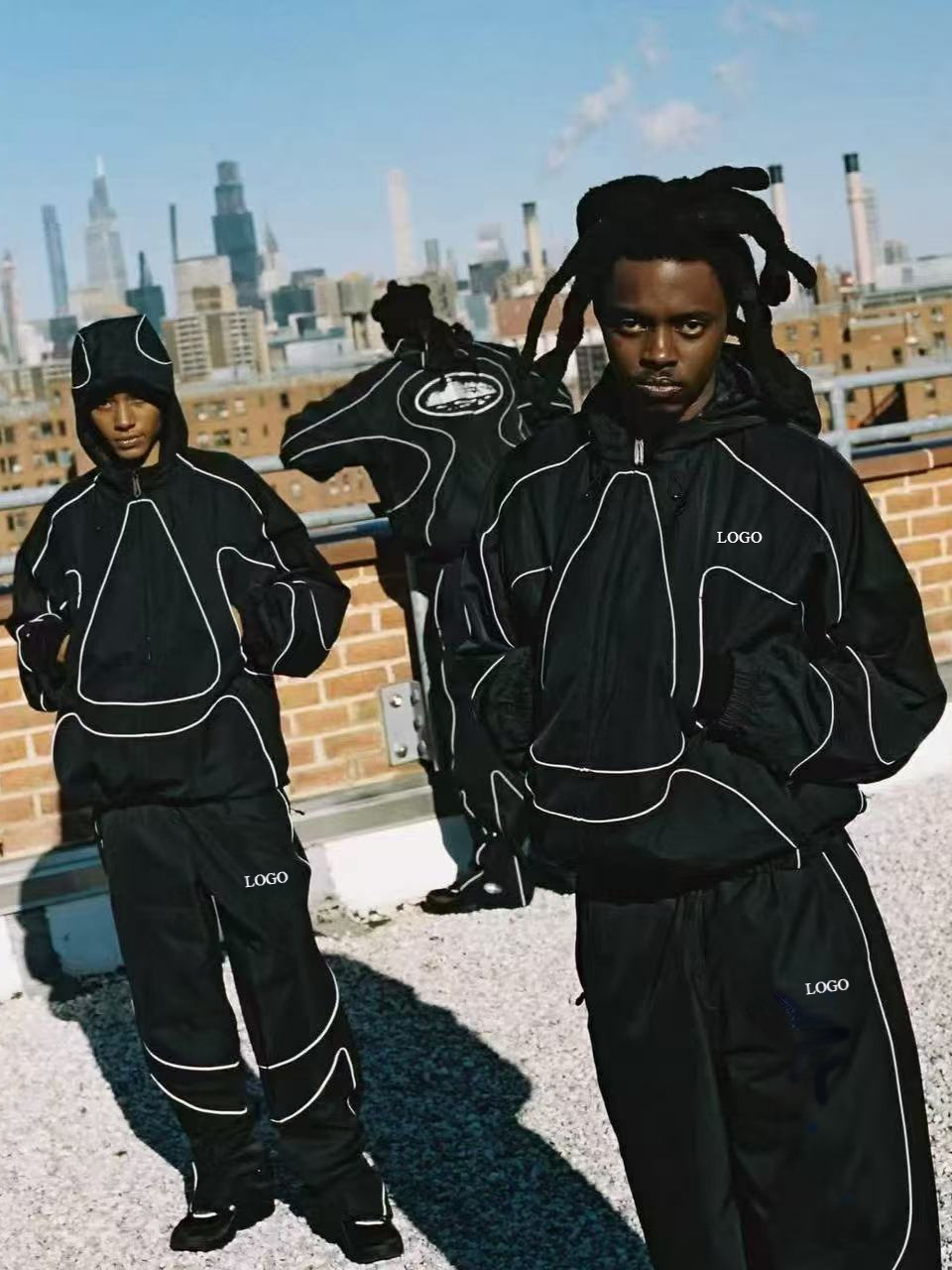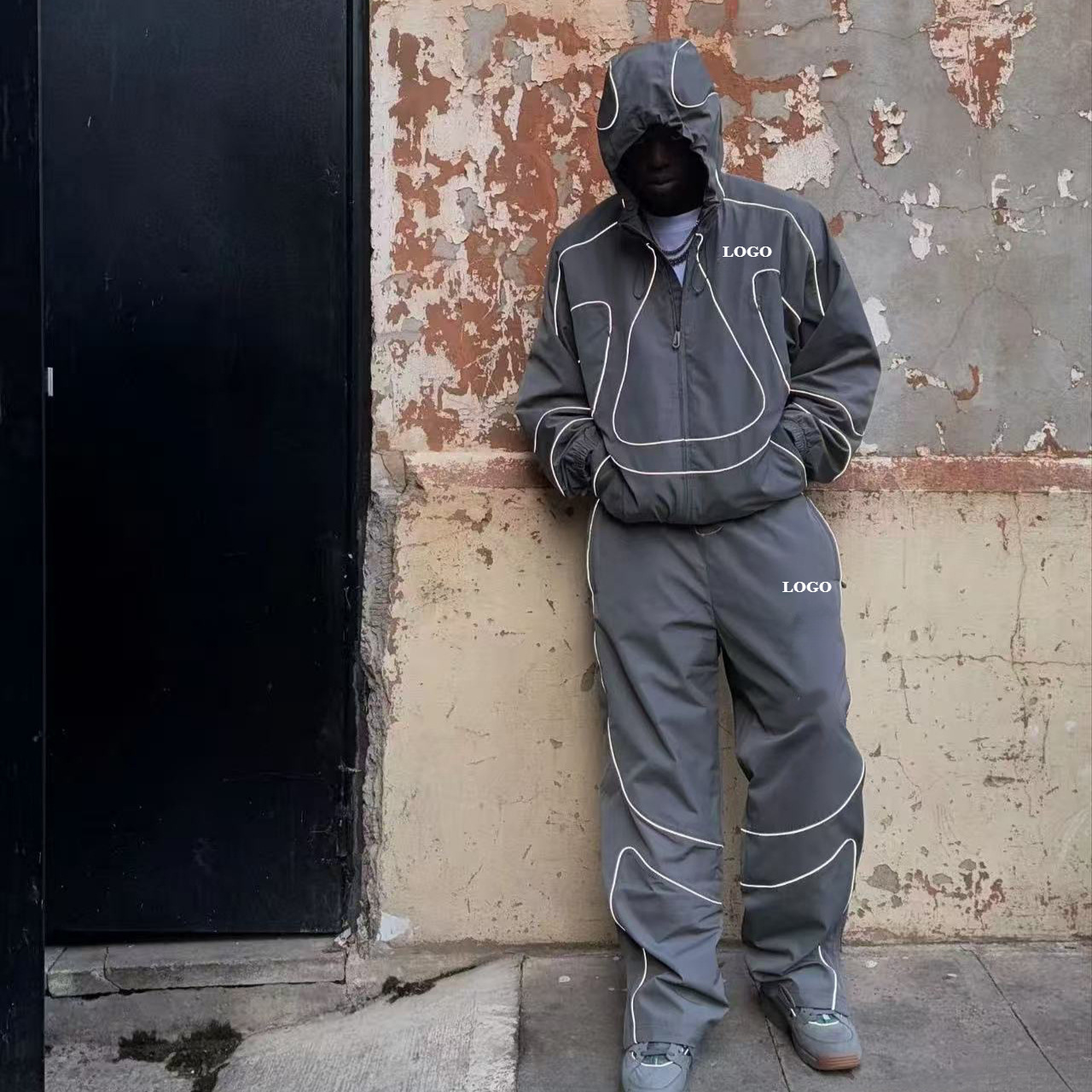 Кросс-бордерная куртка NK Alcatraz с капюшоном, мужская и женская ветровка, водонепроницаемая верхняя одежда со светоотражающими полосками, брюки