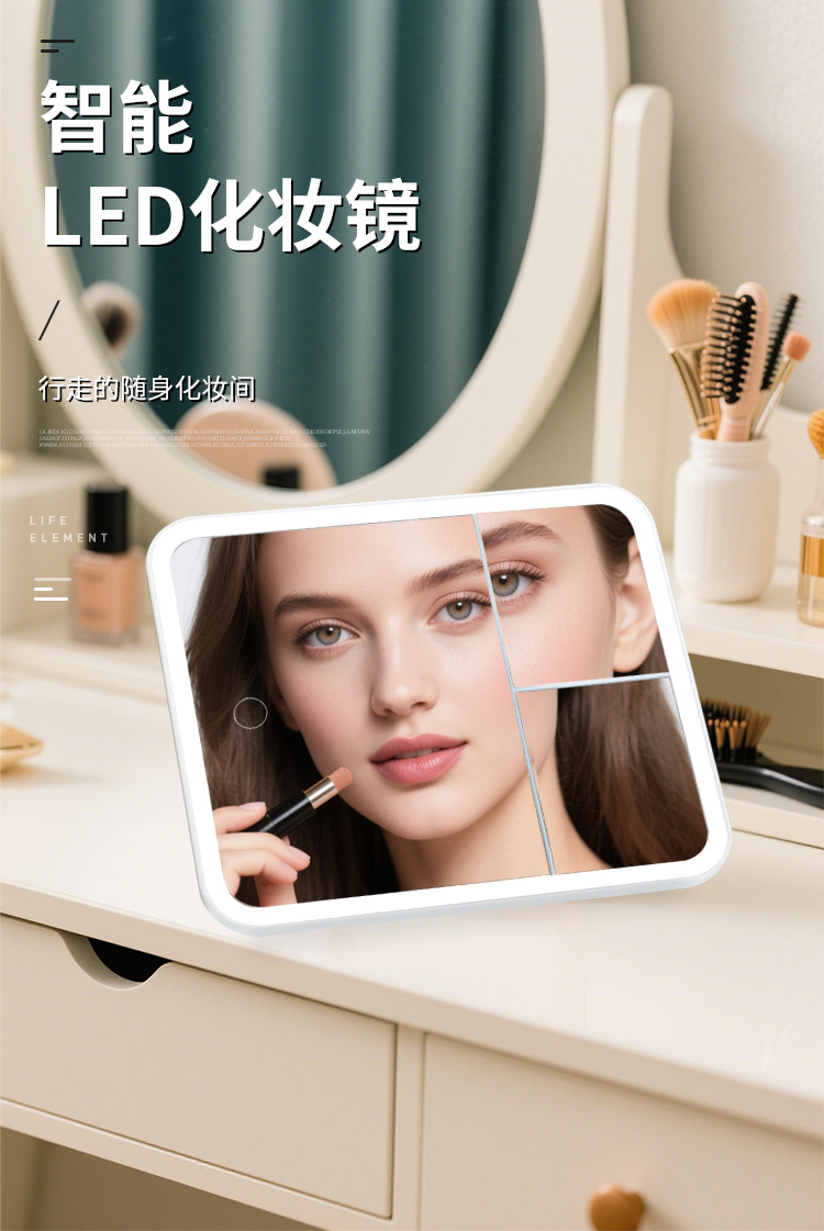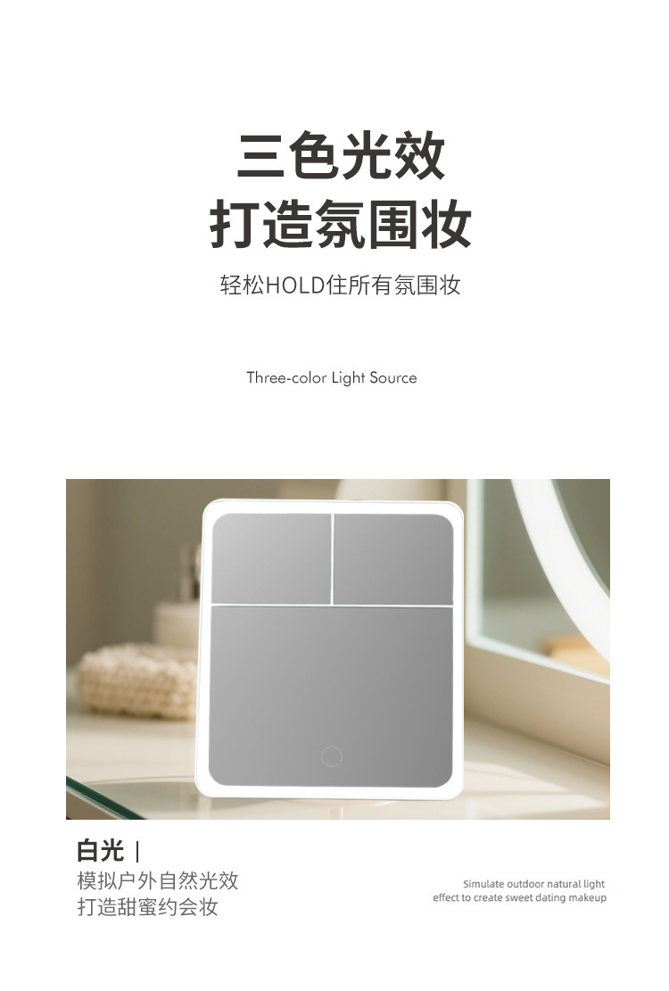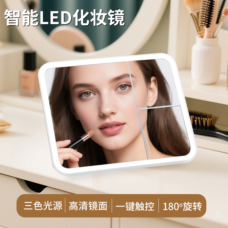 Трансграничное зеркало для макияжа, тройное увеличение, вращающееся светодиодное зеркало для туалетного столика, маленькое зеркало, настольное зеркало для макияжа с заполняющим светом высокой четкости