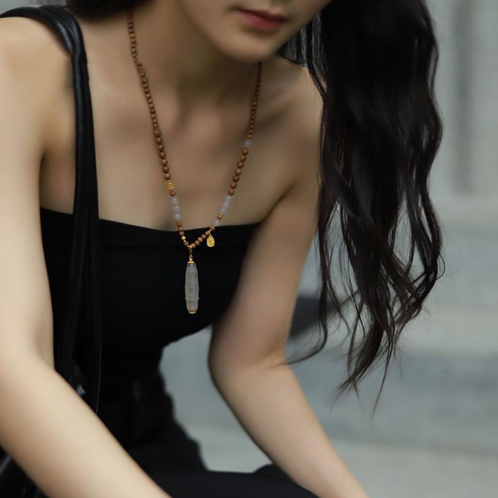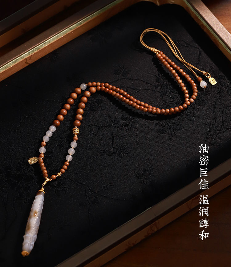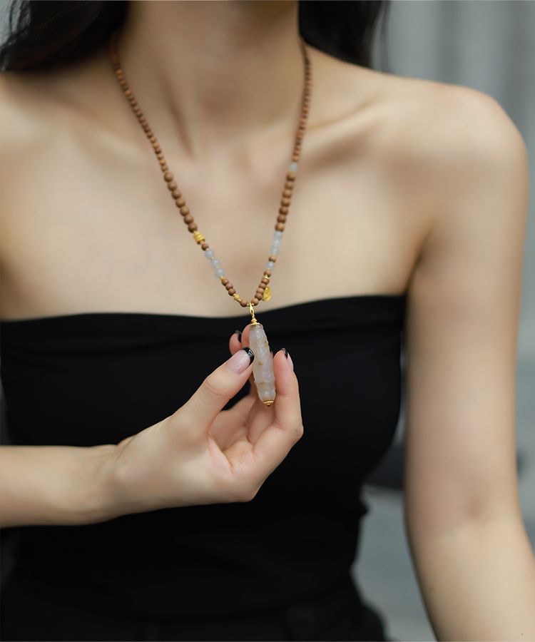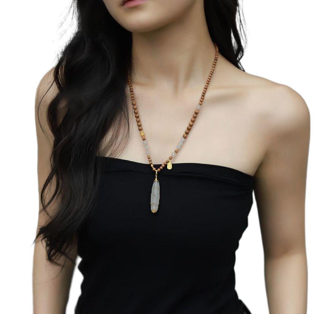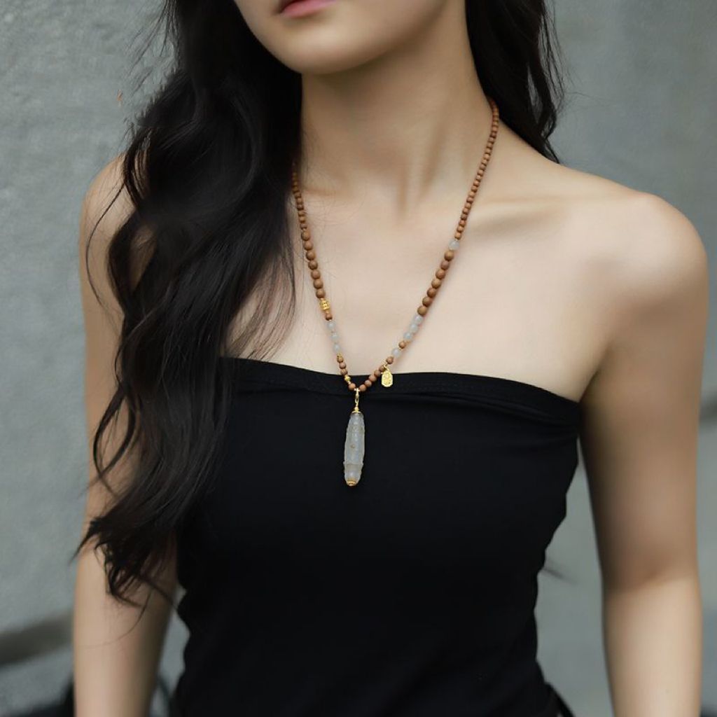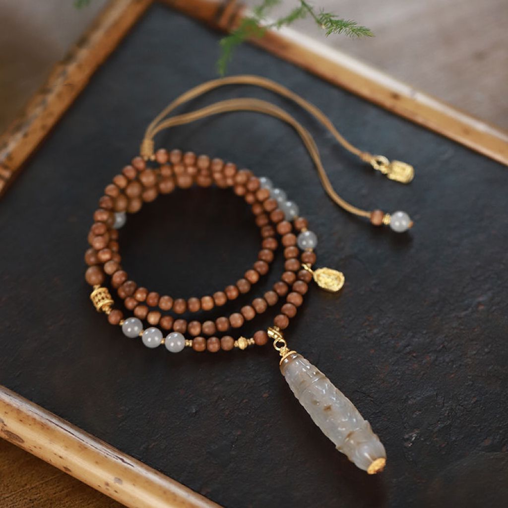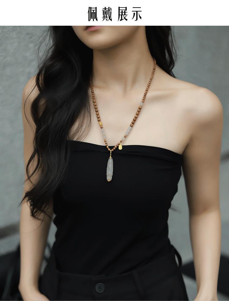 Новые аксессуары в китайском стиле, ожерелье из лаошаньского сандалового дерева и нефрита Хэтиан для женщин, белый агат в тибетском стиле, сменный дракон, подвеска из бисера Дзи