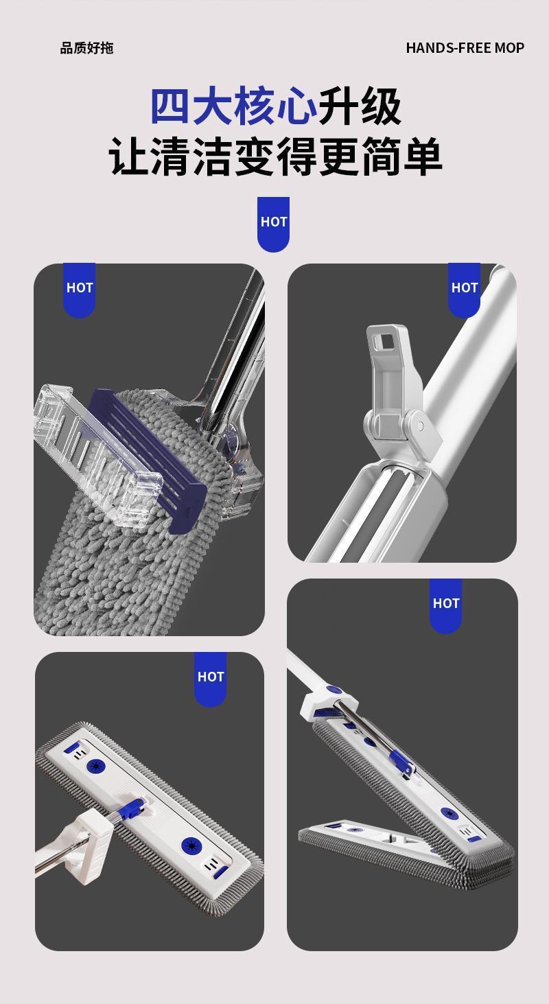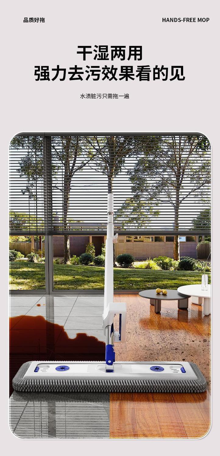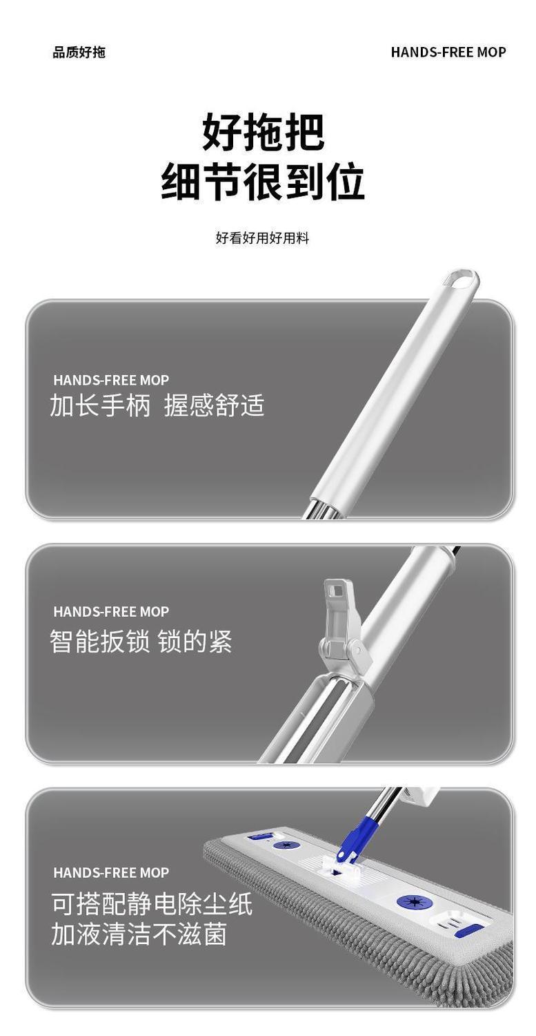 Швабра из микрофибры с нержавеющей сталью, плоская швабра, впитывающая, без помощи рук, двойного назначения, с длинной щетиной, утолщенная.