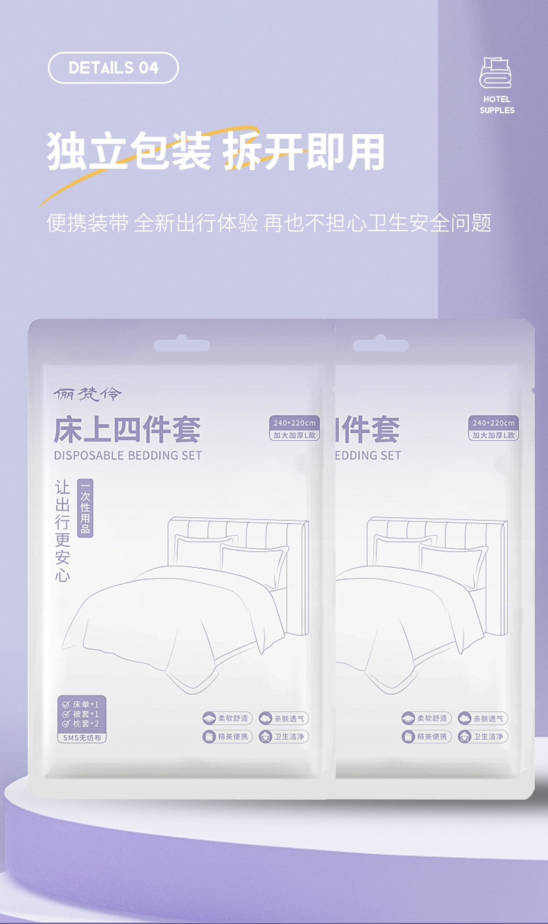 Одноразовые простыни, пододеяльники, наволочки, комплект из четырех предметов, необходимый для деловых поездок, деловых людей в гостиницах, путешествий, грязный комплект из четырех предметов.