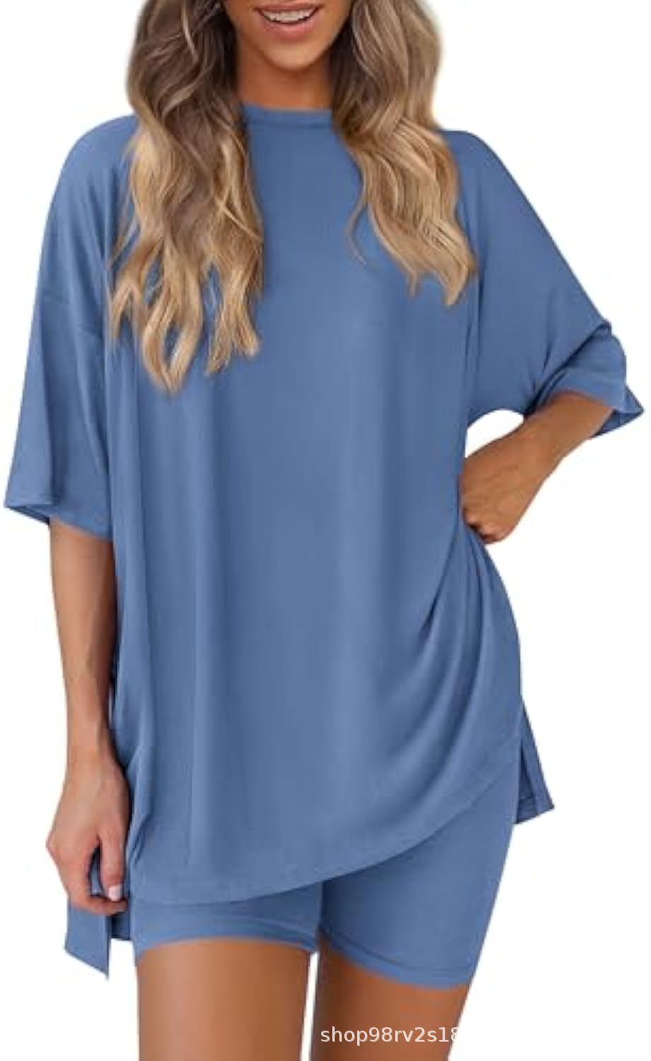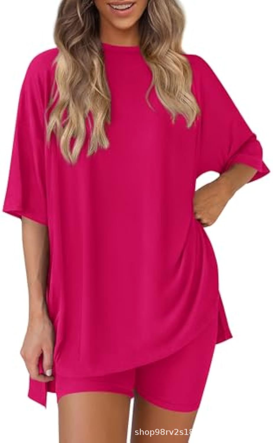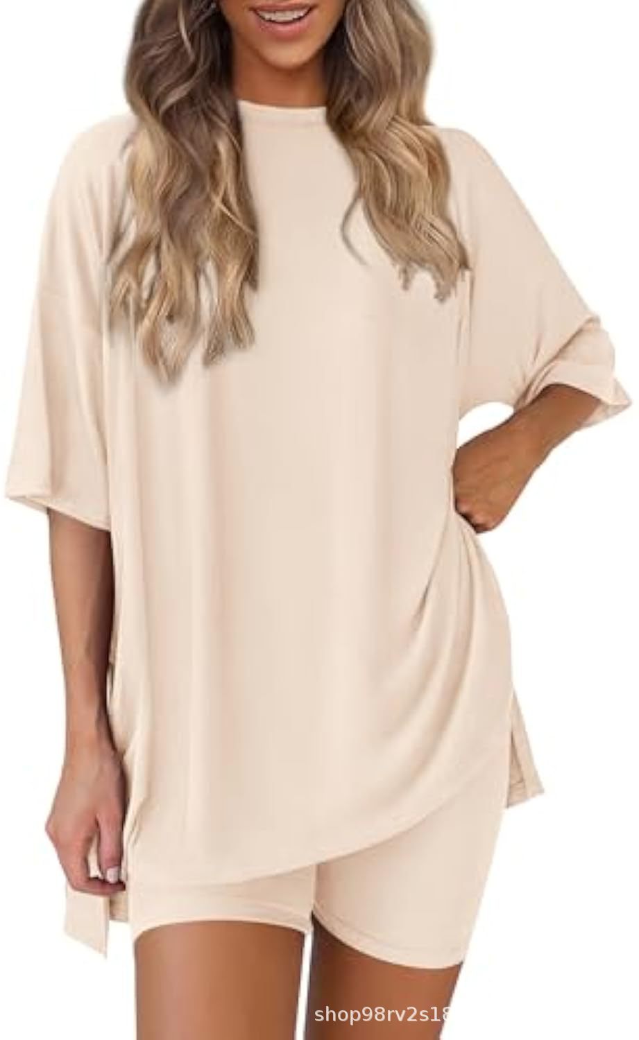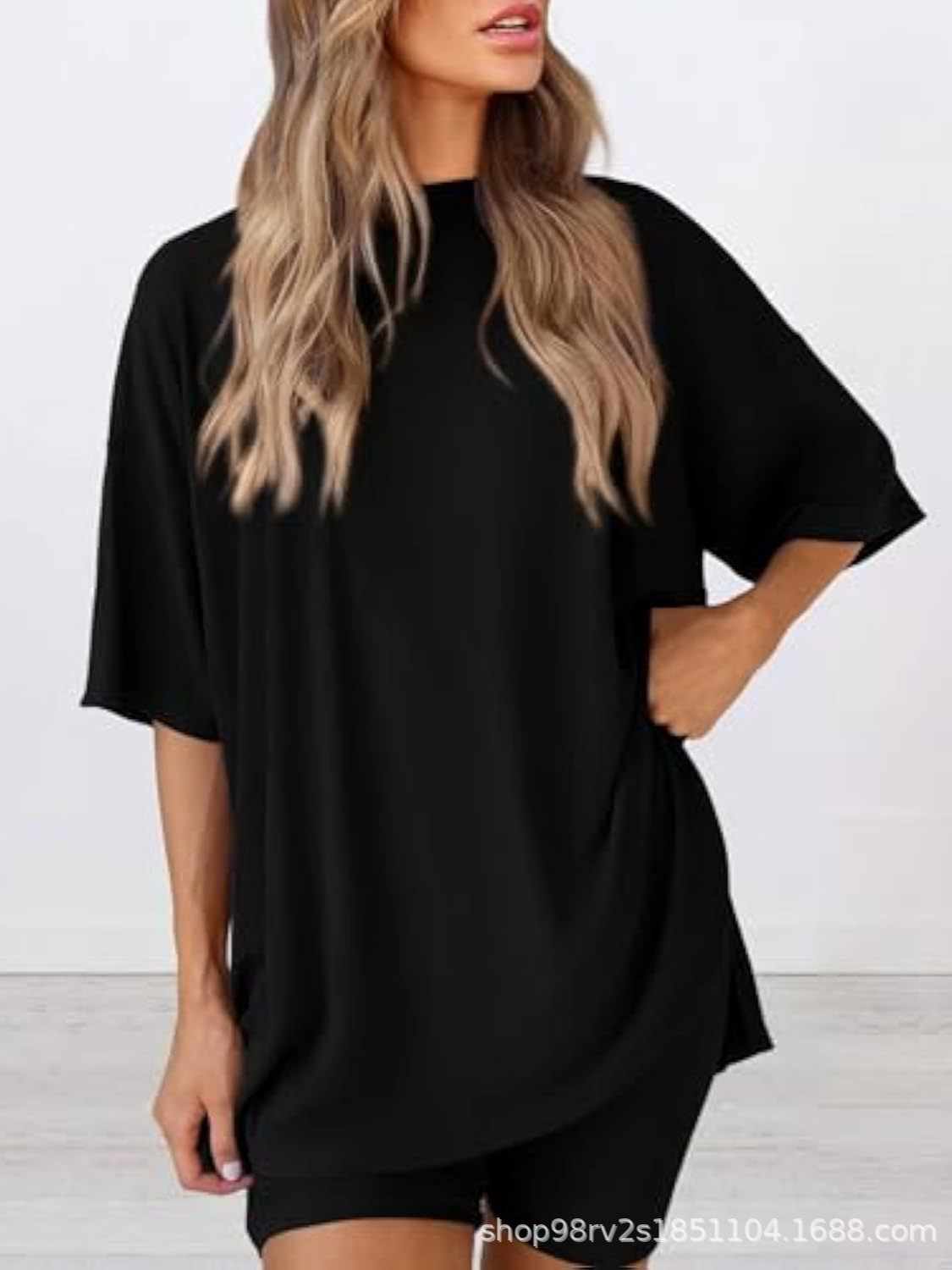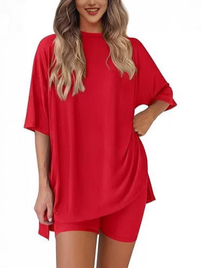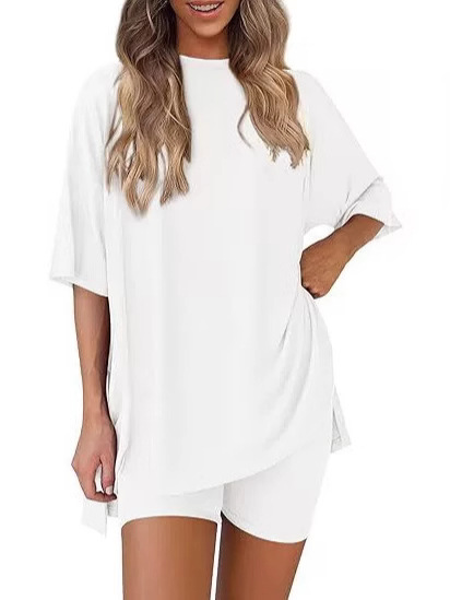 Весна и лето 2025, европейские и американские трансграничные Amazon, новые свободные модные однотонные повседневные шорты с короткими рукавами, костюм из двух предметов T