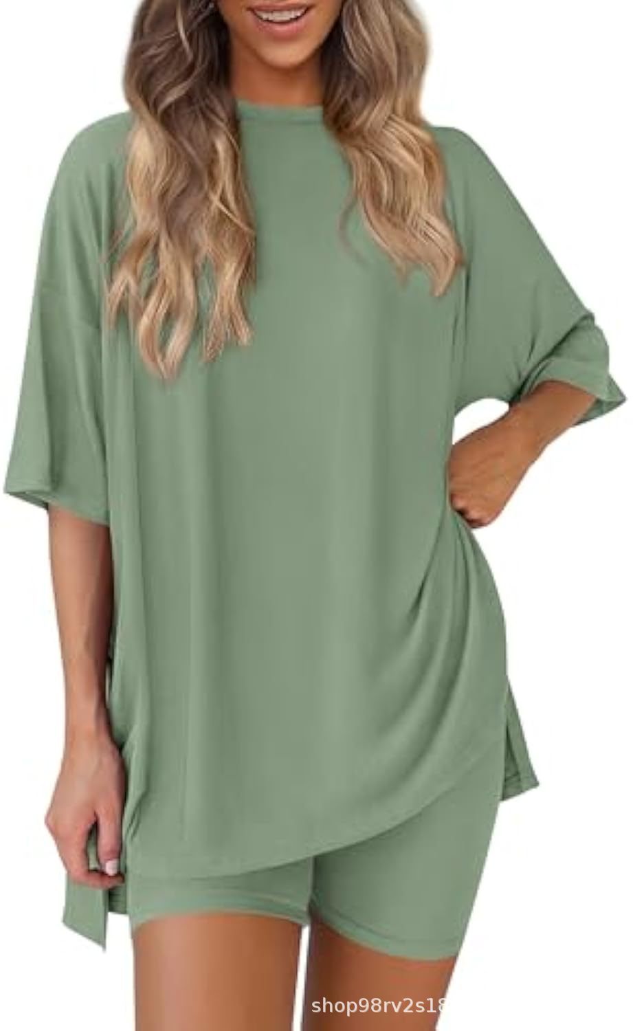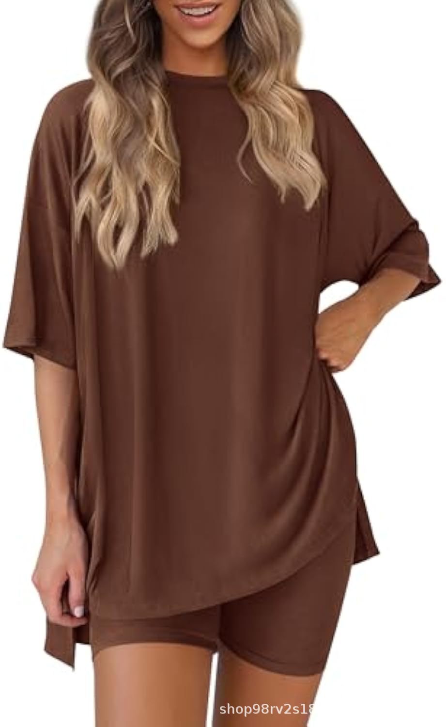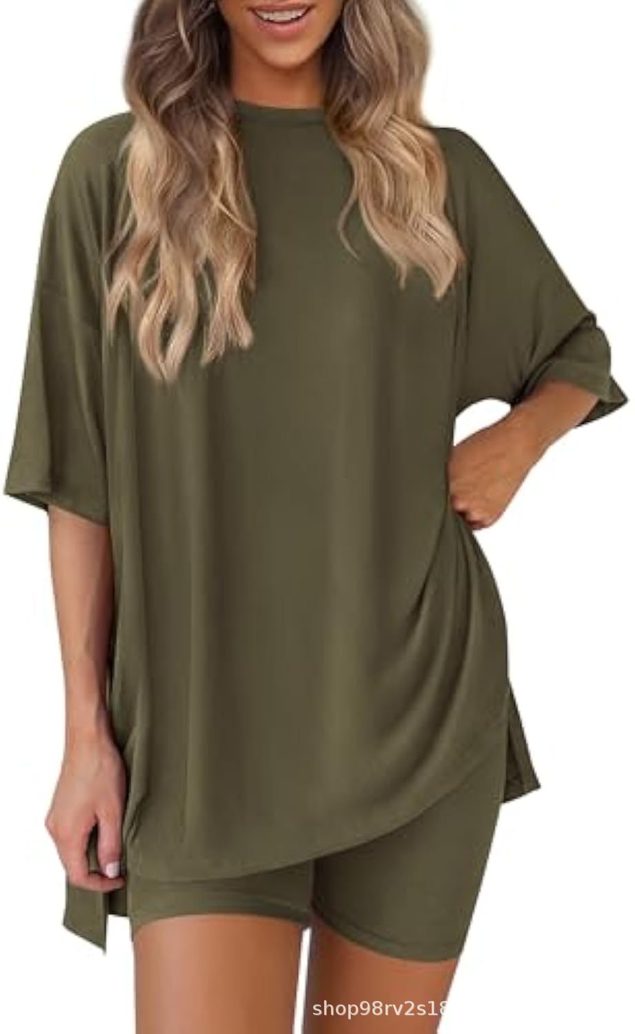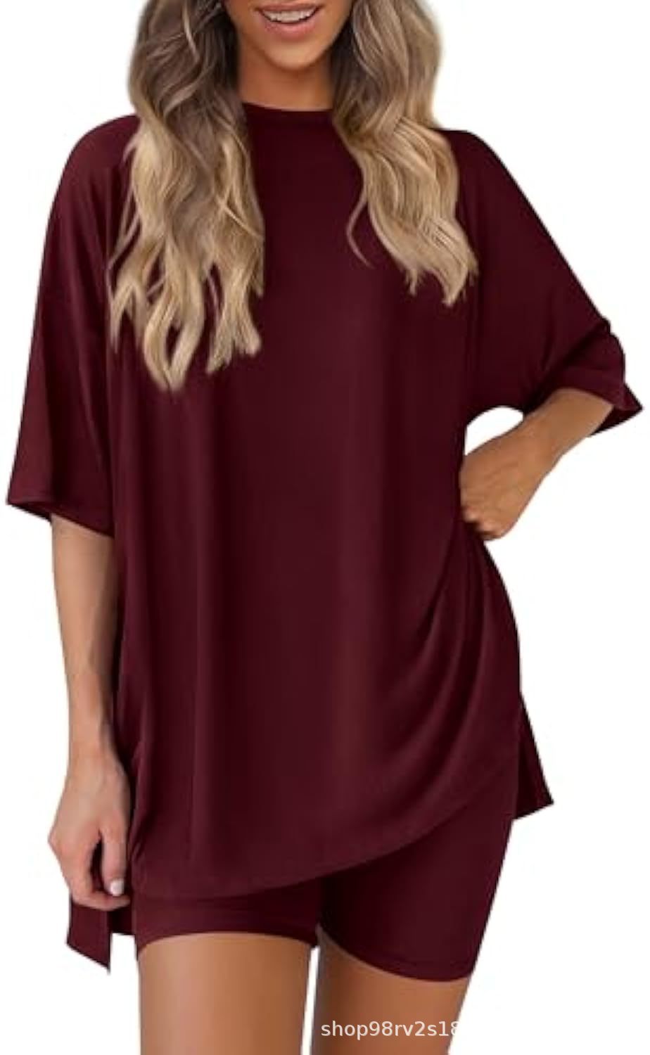 Весна и лето 2025, европейские и американские трансграничные Amazon, новые свободные модные однотонные повседневные шорты с короткими рукавами, костюм из двух предметов T