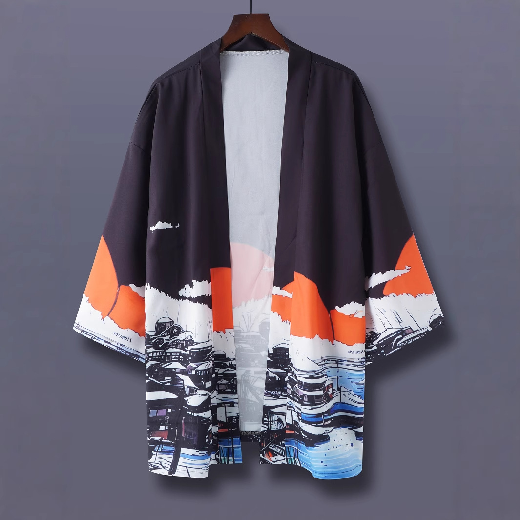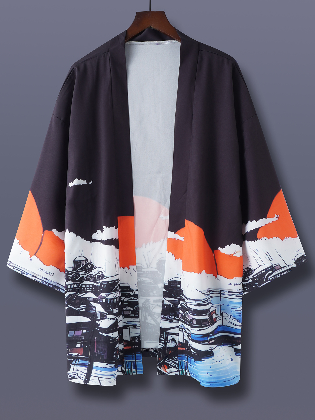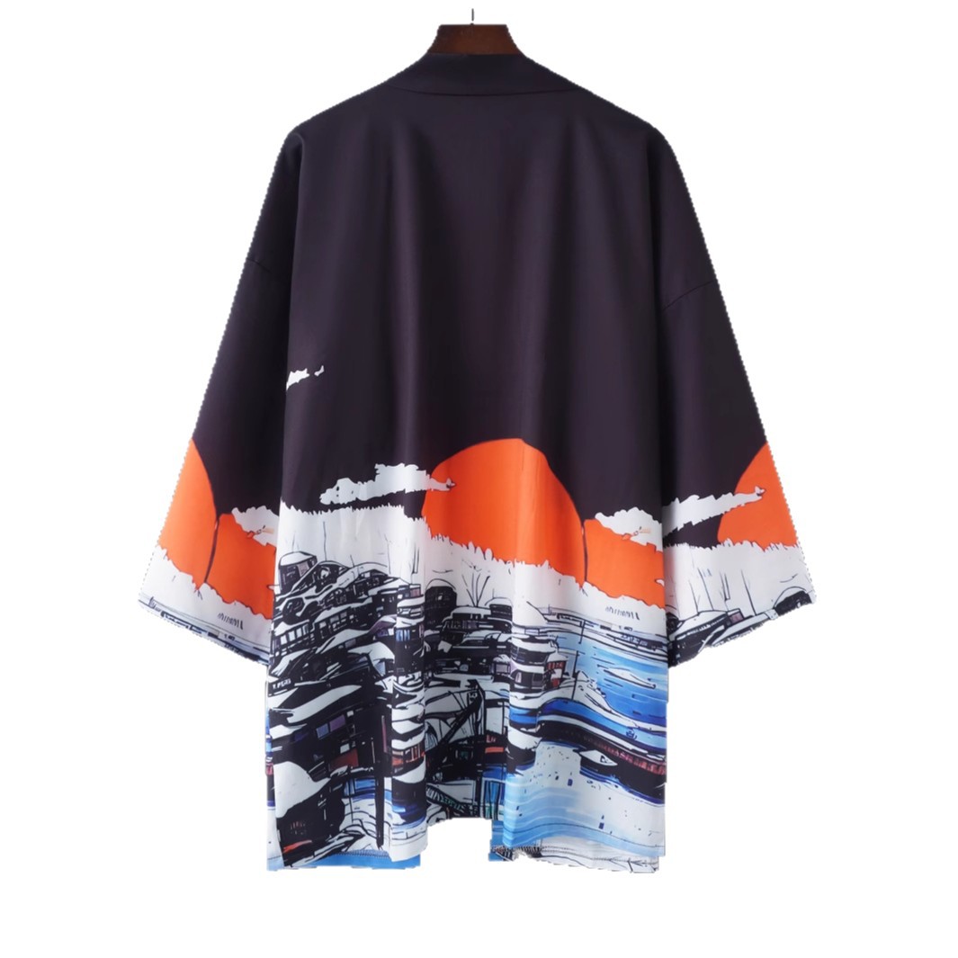 Тонкий улучшенный кимоно-накидок в японском стиле, свободный модный кардиган-хаори с рукавами три четверти, тонкая куртка для защиты от летнего солнца.