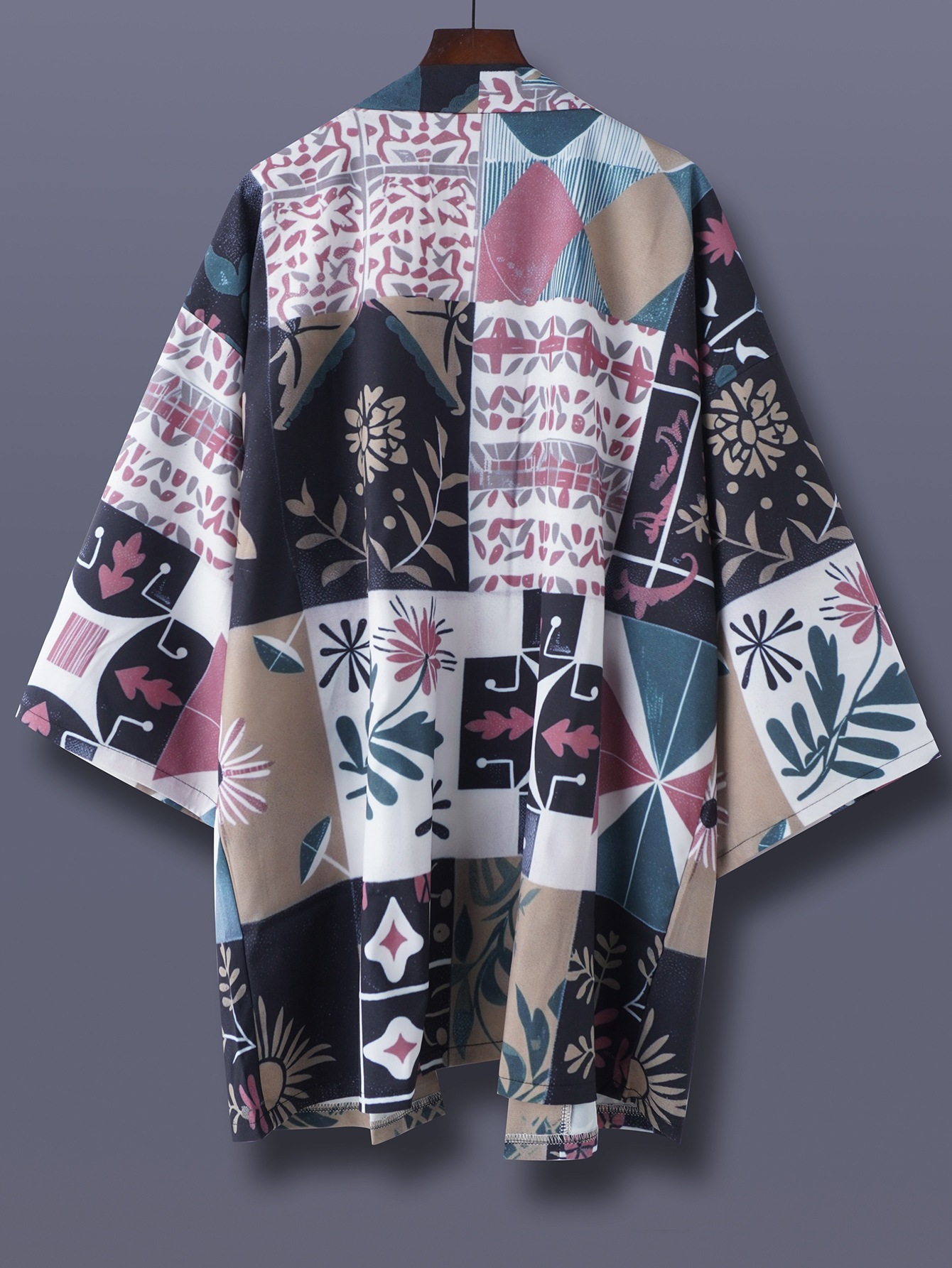 Свободное японское кимоно для пар в стиле Харадзюку BF, тонкое пальто в клетку, кимоно с абстрактным принтом, кардиган с рукавами три четверти