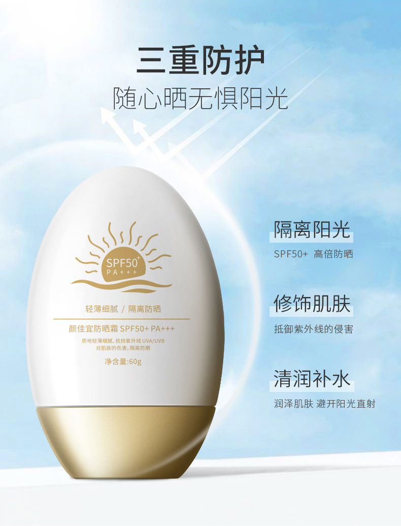 Солнцезащитный крем Yan Jiayi SPF50 можно использовать по всему телу для изоляции ультрафиолетовых лучей, длительный освежающий солнцезащитный крем в наличии.