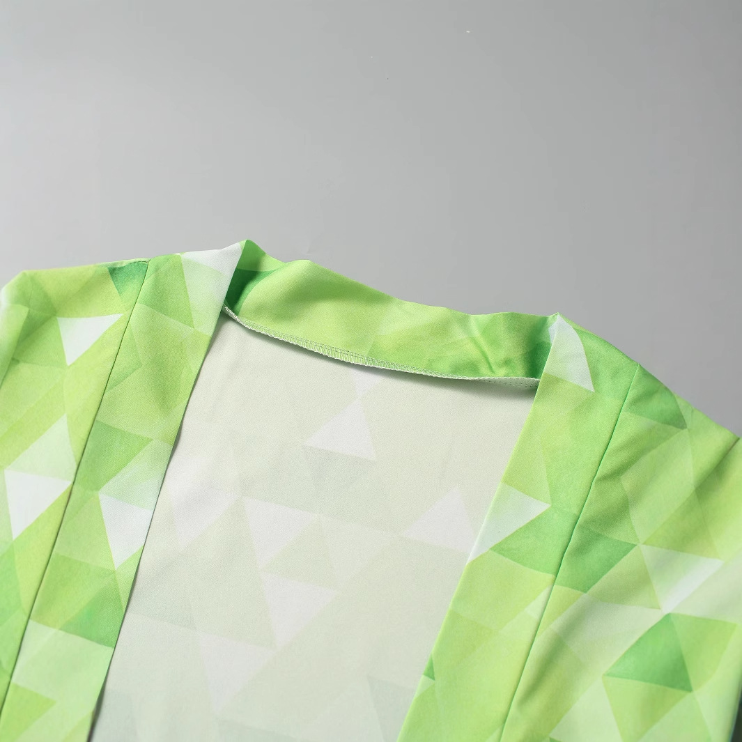 Свободный стиль Harajuku bf в японском стиле для пар, тканое перо среднего размера в клетку с абстрактным принтом, кимоно, кардиган с рукавами три четверти