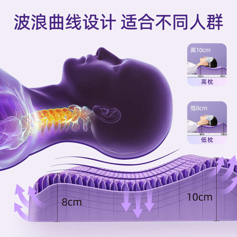 Подушка с наполнителем из лаванды, фиолетовая, для снятия давления, помощь для сна, с волнообразной структурой, наволочка из TPE, защита для подушки для глубокого сна