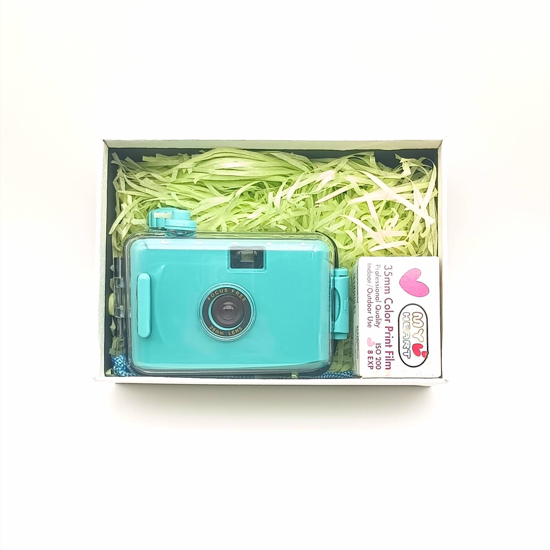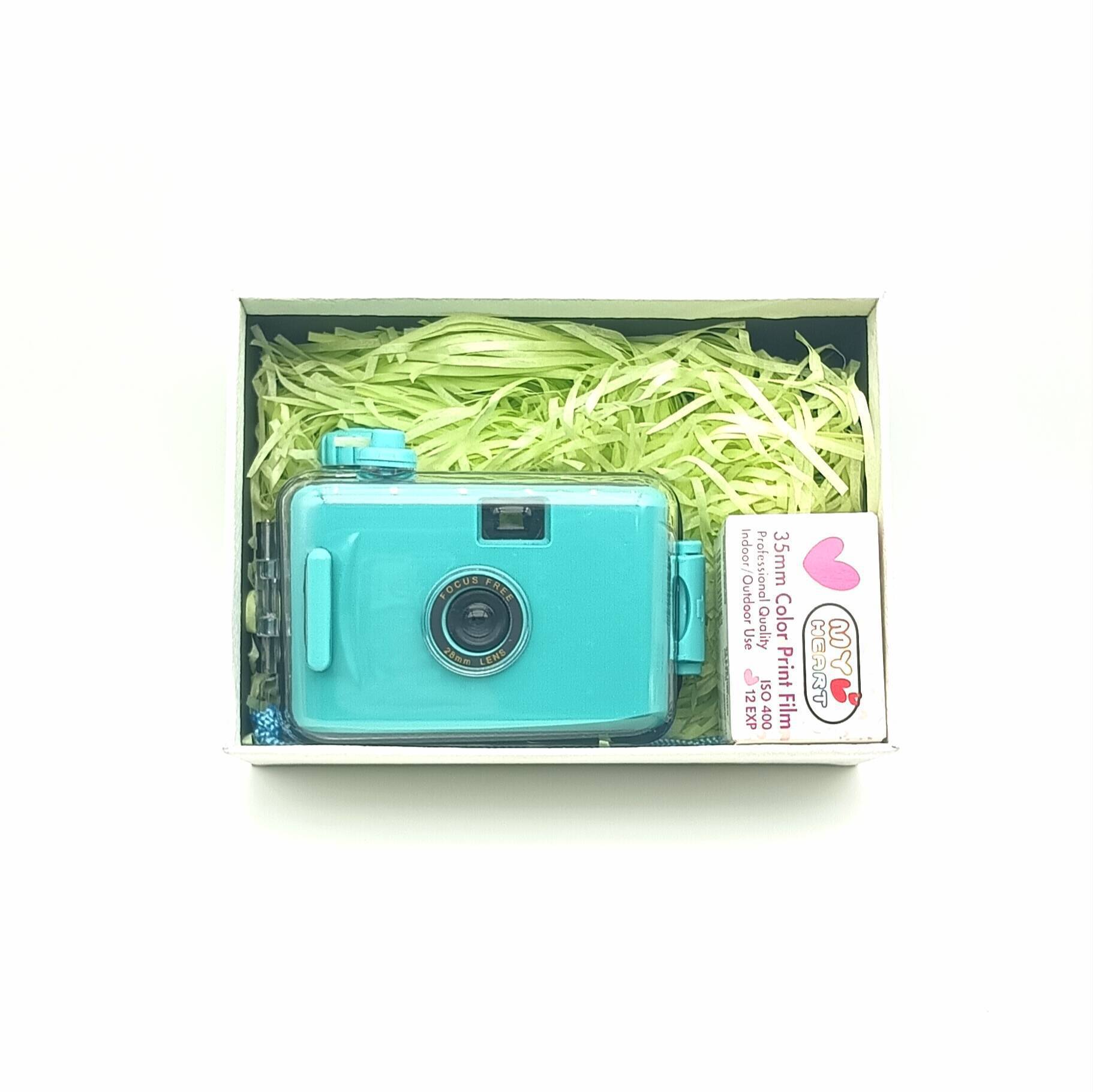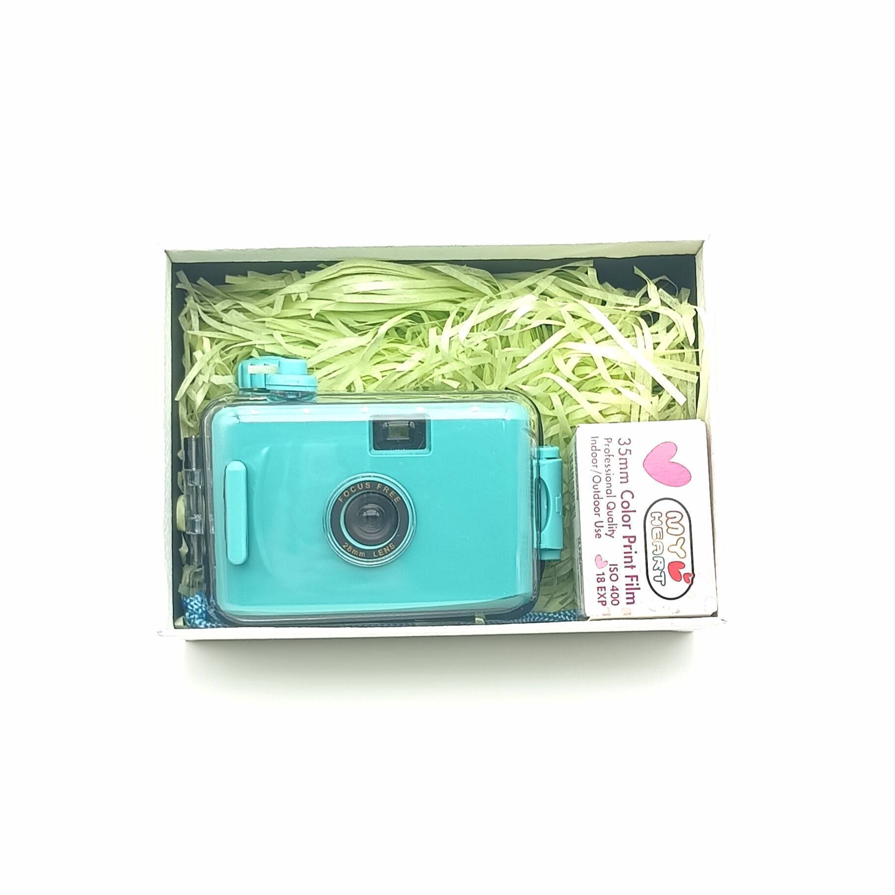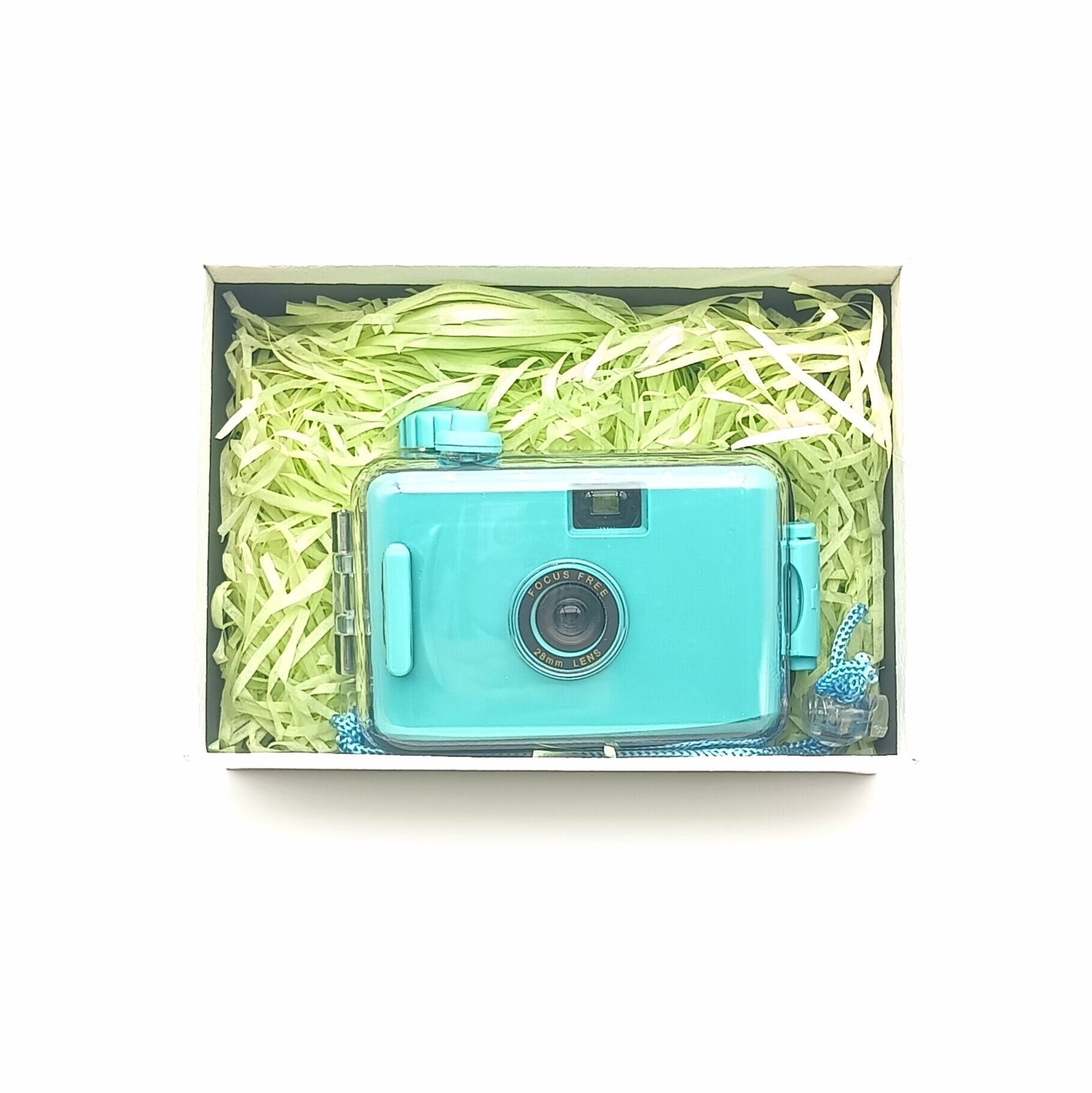 Голубая одноразовая мгновенная водонепроницаемая камера для детей, ретро-фотокамера в подарочной коробке