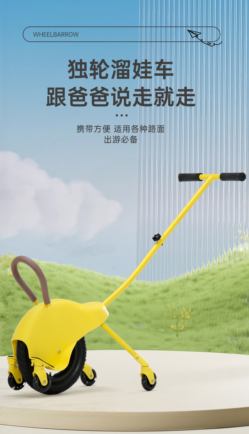 Моноколесо для родителей и детей можно сидеть на нем и имеет вспомогательные колеса для прогулок ребенка, игр на открытом воздухе и в стиле кемпинга, легкая детская коляска.