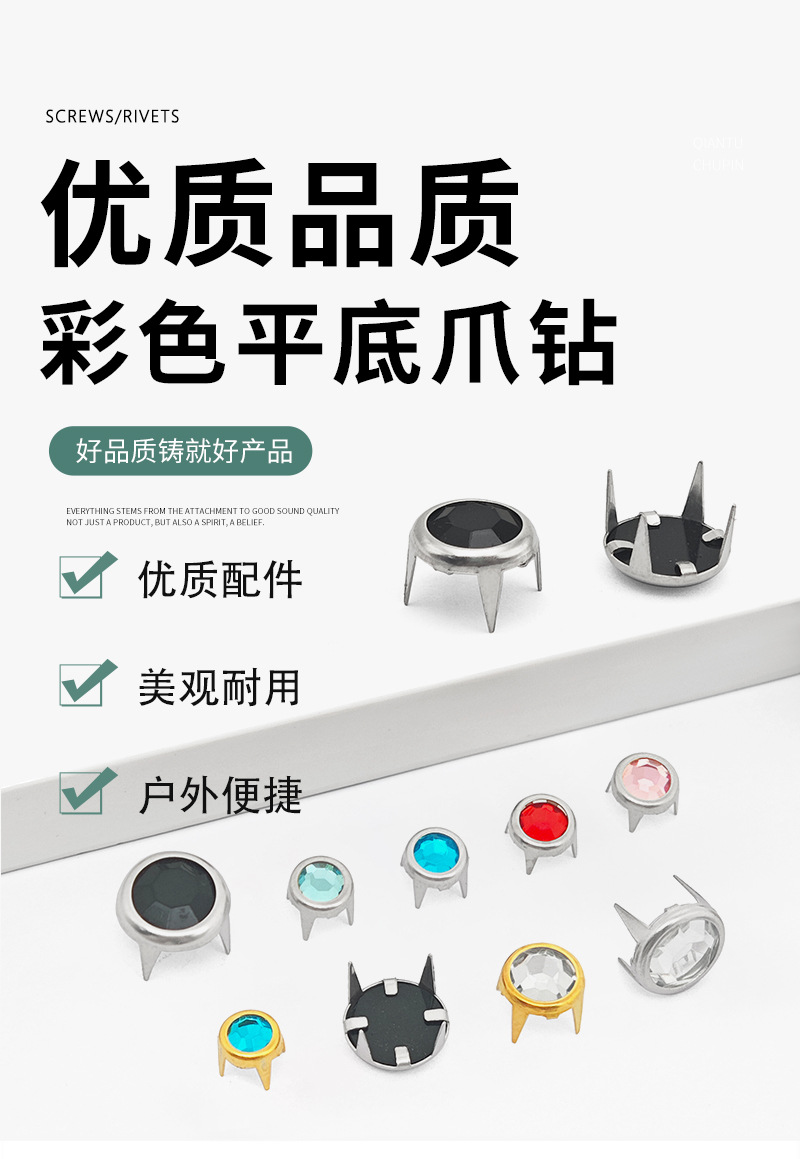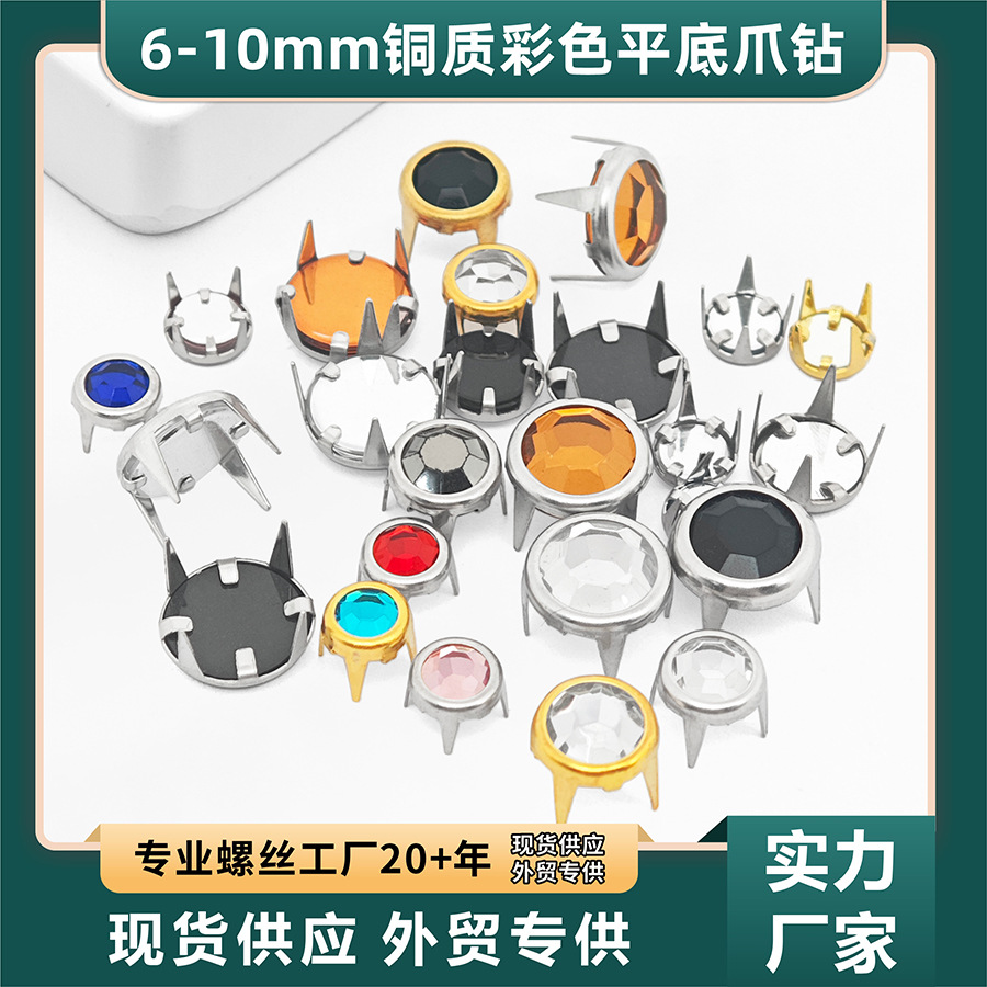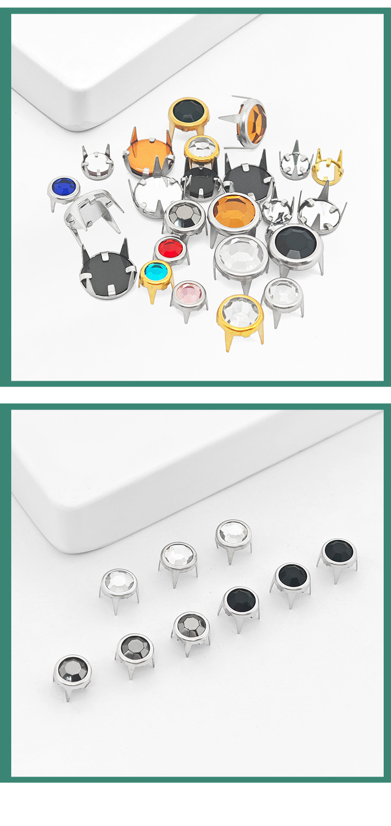 Фабрика поставляет разноцветные плоские стразы с когтями для одежды, сумок, коробок, кожаной обуви, шляп, аксессуаров из нержавеющих страз.