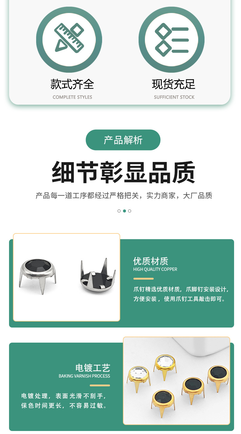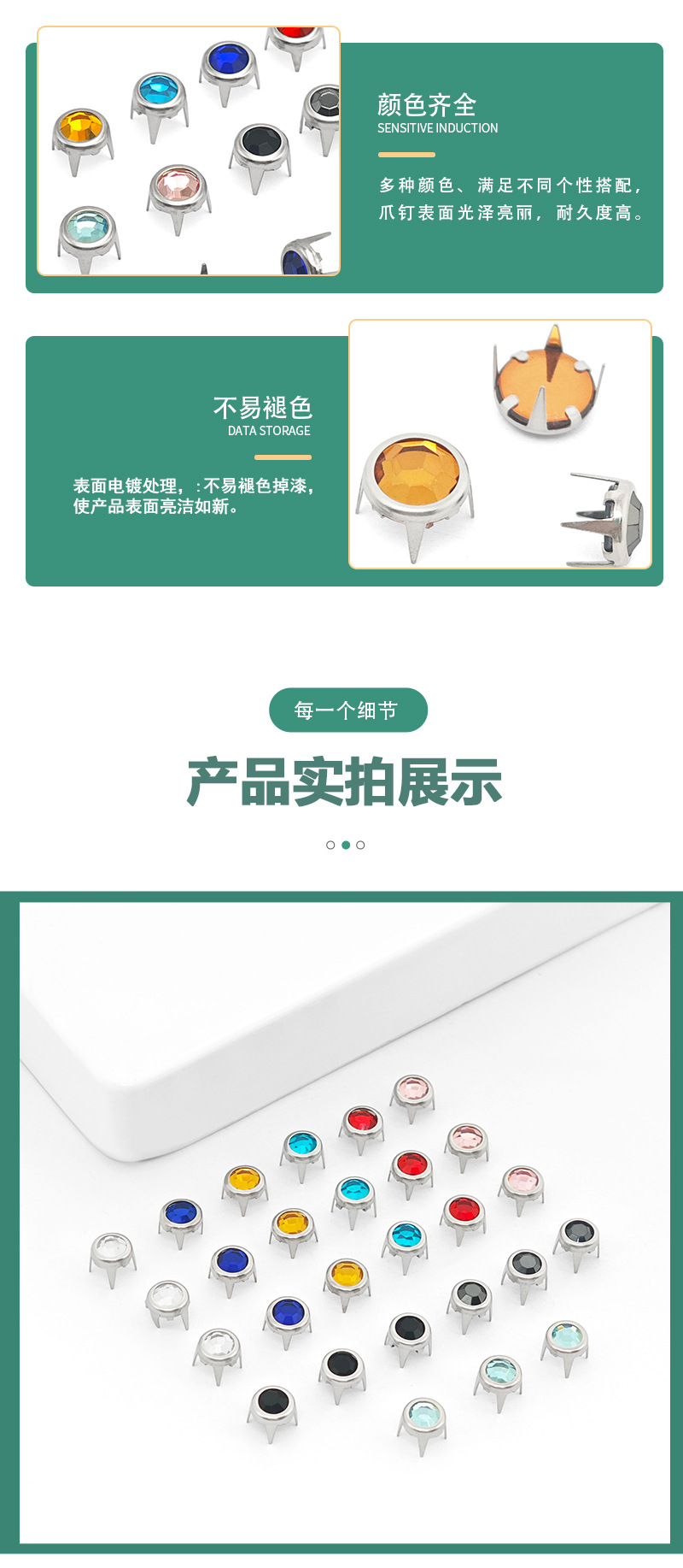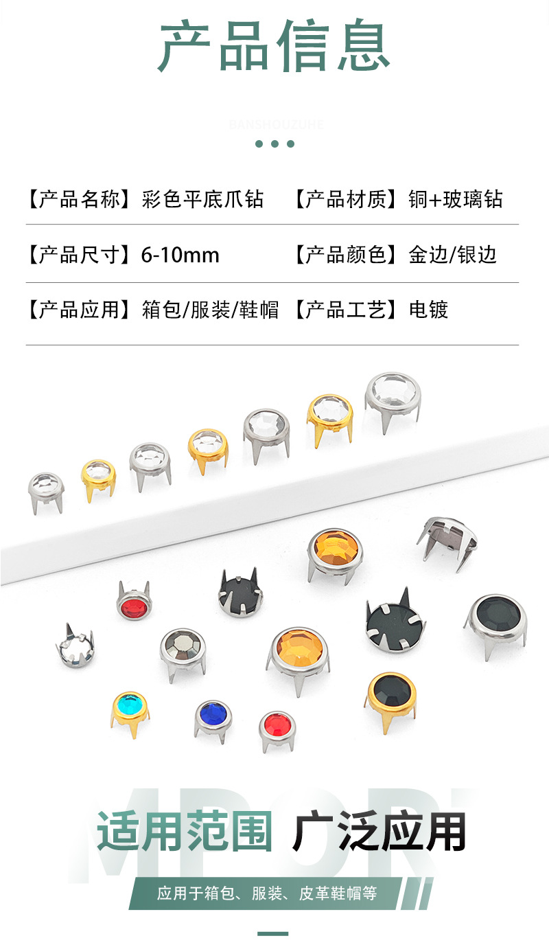 Фабрика поставляет разноцветные плоские стразы с когтями для одежды, сумок, коробок, кожаной обуви, шляп, аксессуаров из нержавеющих страз.