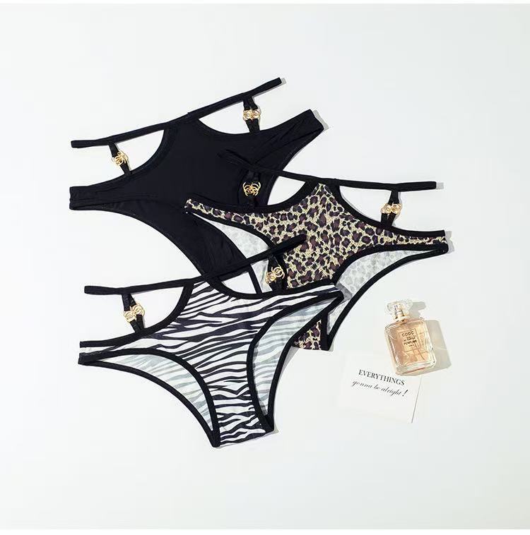 Европейское и американское нижнее белье с леопардовым принтом для сексуальных девушек, металлическая пряжка, вырез на бедрах, средняя талия, треугольное искушение, сексуальное женское нижнее белье