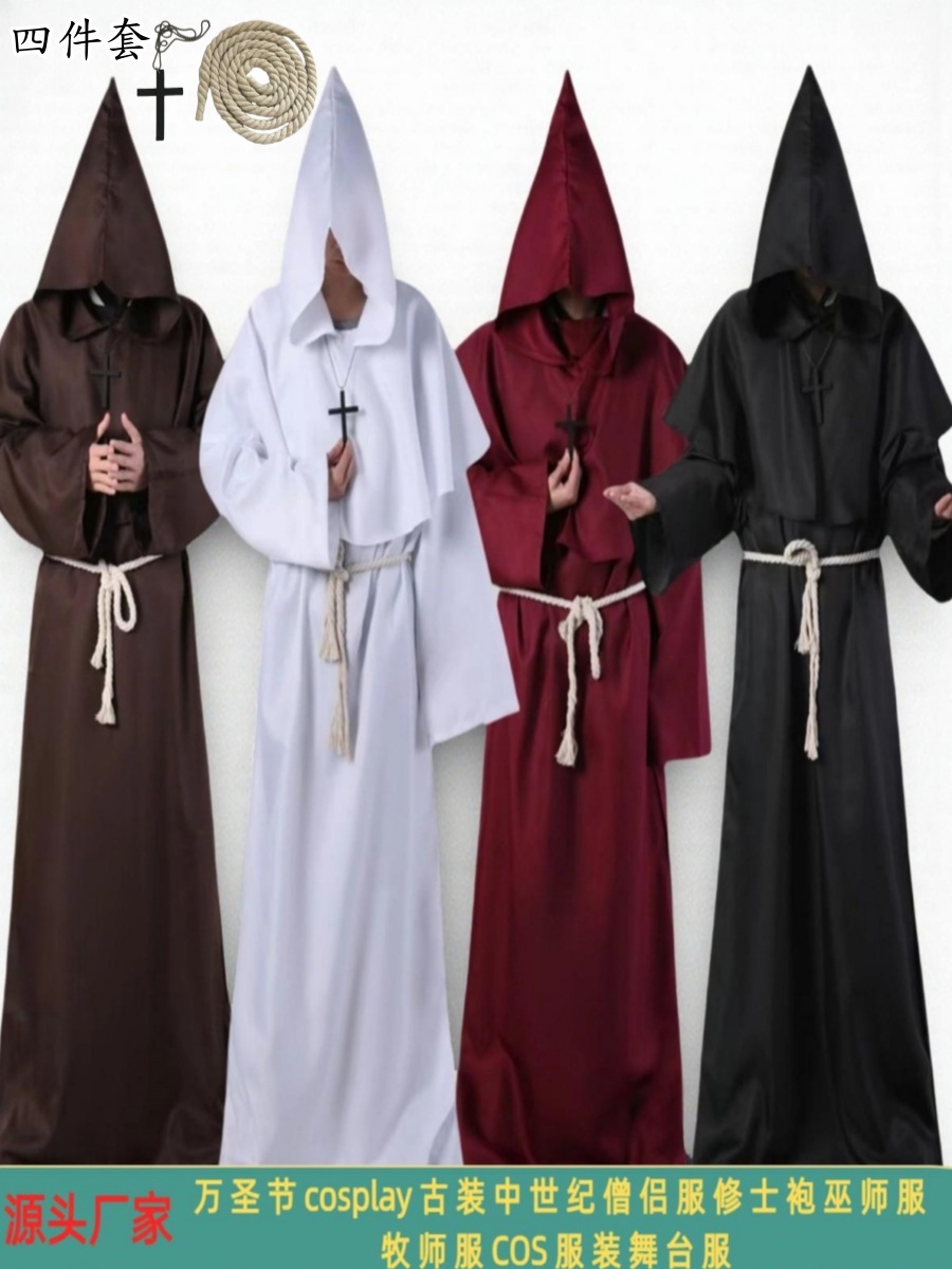 Костюм для косплея на Хэллоуин, средневековый костюм монаха, монашеский халат, костюм волшебника, костюм священника, костюм COS, сценический костюм